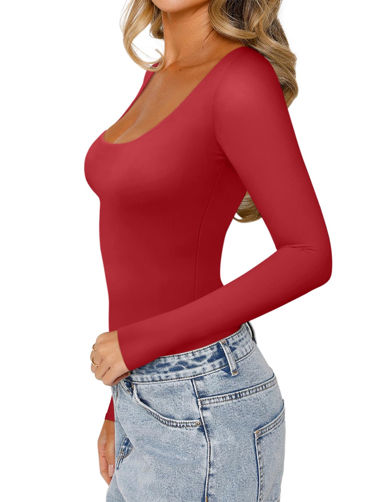 πΈMaterial: 75%Polyester +25%Spandex. Buttery feeling, double lined, not see through, super soft, breathable, stretchy, compression fit. This long sleeve bodysuit shapes your figure and accentuates all the right places. WYSIWYG!