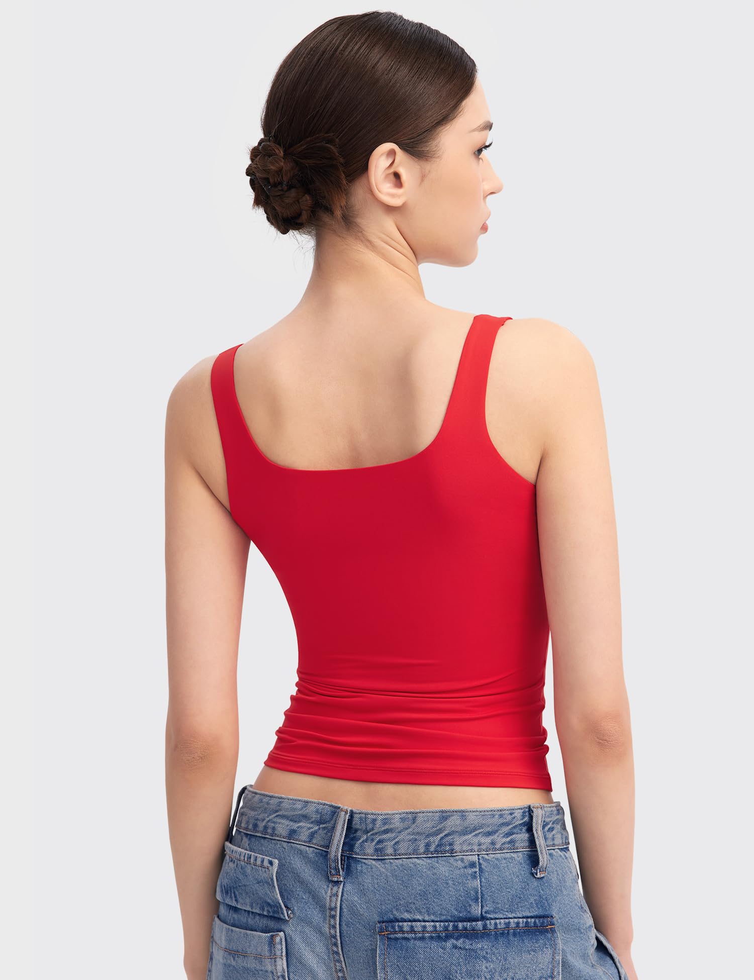 Double Lined Fabric: Our tank top for women boasts a double-layered fabric that guarantees both opacity and optimal breathability in hot summer. With its high elasticity and soft, skin-friendly fabric, you'll revel in unparalleled comfort and unrestricted movement.
