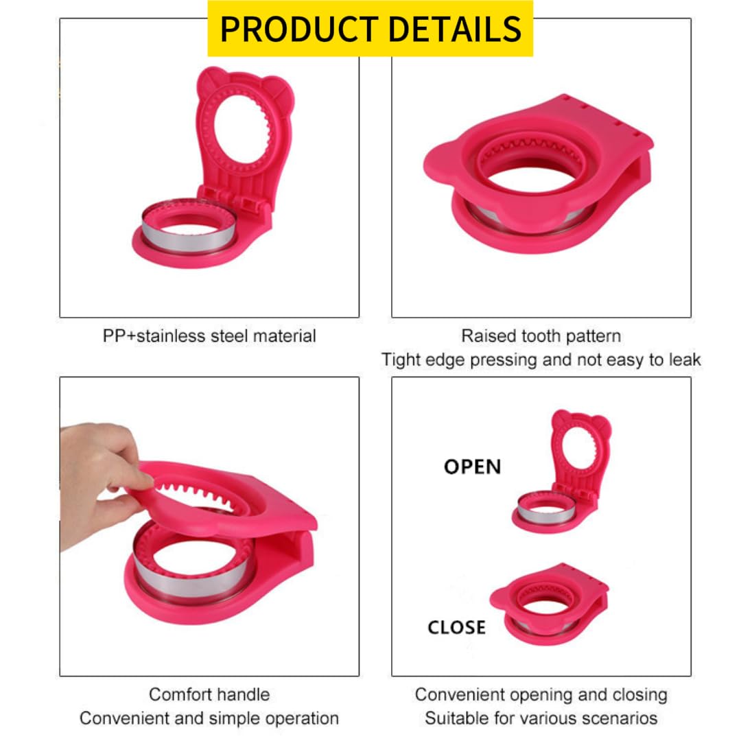 Sandwich Cutter and Sealer 2 for 1:This Uncrustables Sandwich Maker is easy to use. You can make a sandwich in just two steps. One step, filling anything you would like on the bread. The secent step:Press down to cutter and seal one step design. The sharp cutting edge will create the pocket sandwich shape while also sealing the edges of the sandwich.