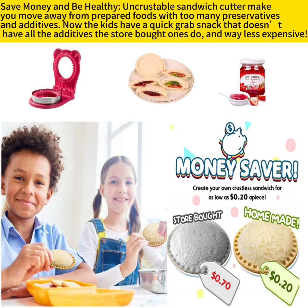 Save Money and Be Healthy: Uncrustable sandwich cutter make you move away from prepared foods with too many preservatives and additives. Now the kids have a quick grab snack that doesn't have all the additives the store bought ones do, and way less expensive! If you're looking to save approximately 40 cents per sandwhich it's a good option. Saves tons of money.
