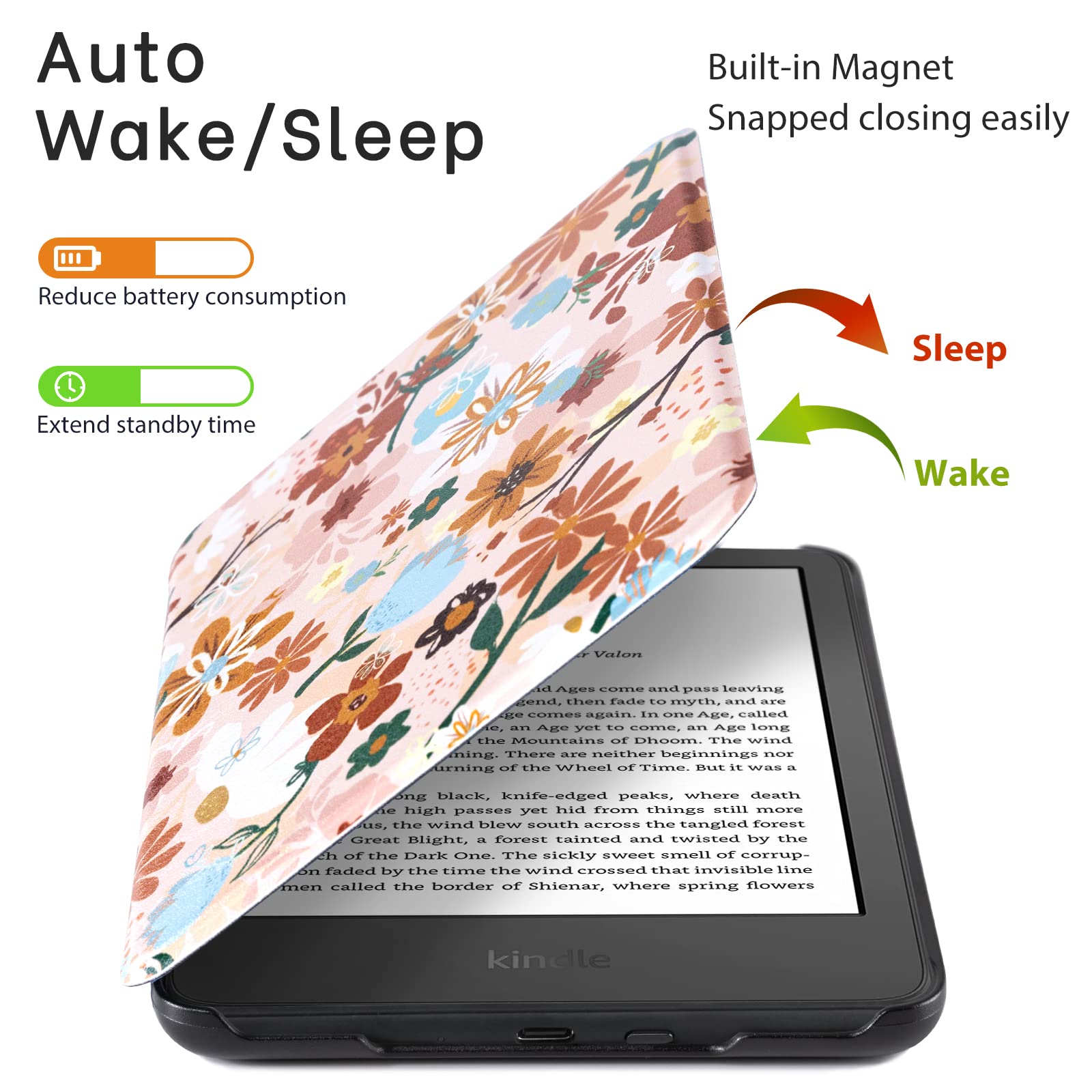 AUTO WAKE/SLEEP: With the built-in smart sensor, your Kindle e-reader will be woke up or put to sleep seamlessly. MAGNETIC CLOSURE: The magnetic design helps the kindle cover close securely, providing a 360 degree protection for your device.