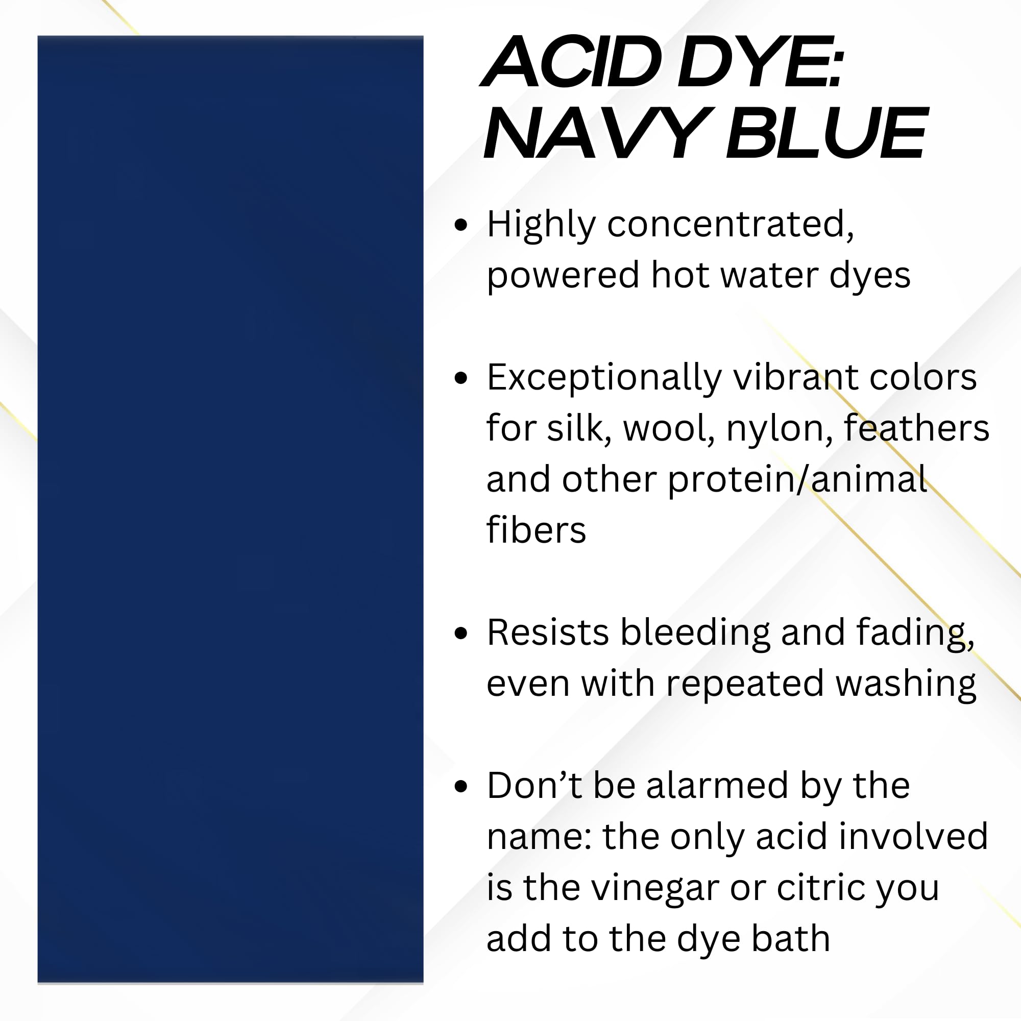 Easy to Use - Heat the water to 180 degrees F (80 degrees C) then add the dye. Add wet fabric to the dye mixture, then add chosen acid (vinegar or citric acid). Acid Dyes are stable in solution, allowing you to save the dye bath or stock solution for future use