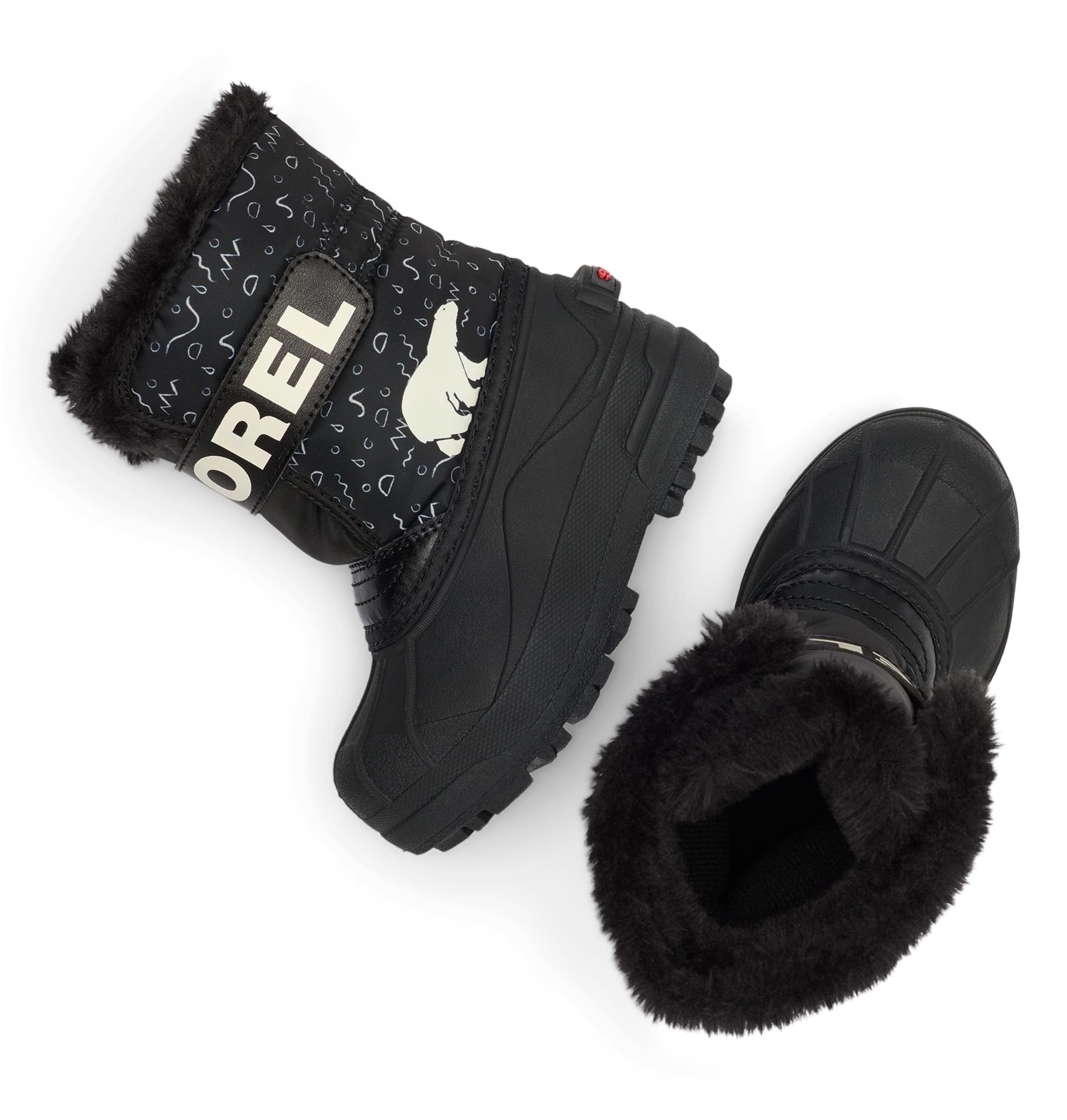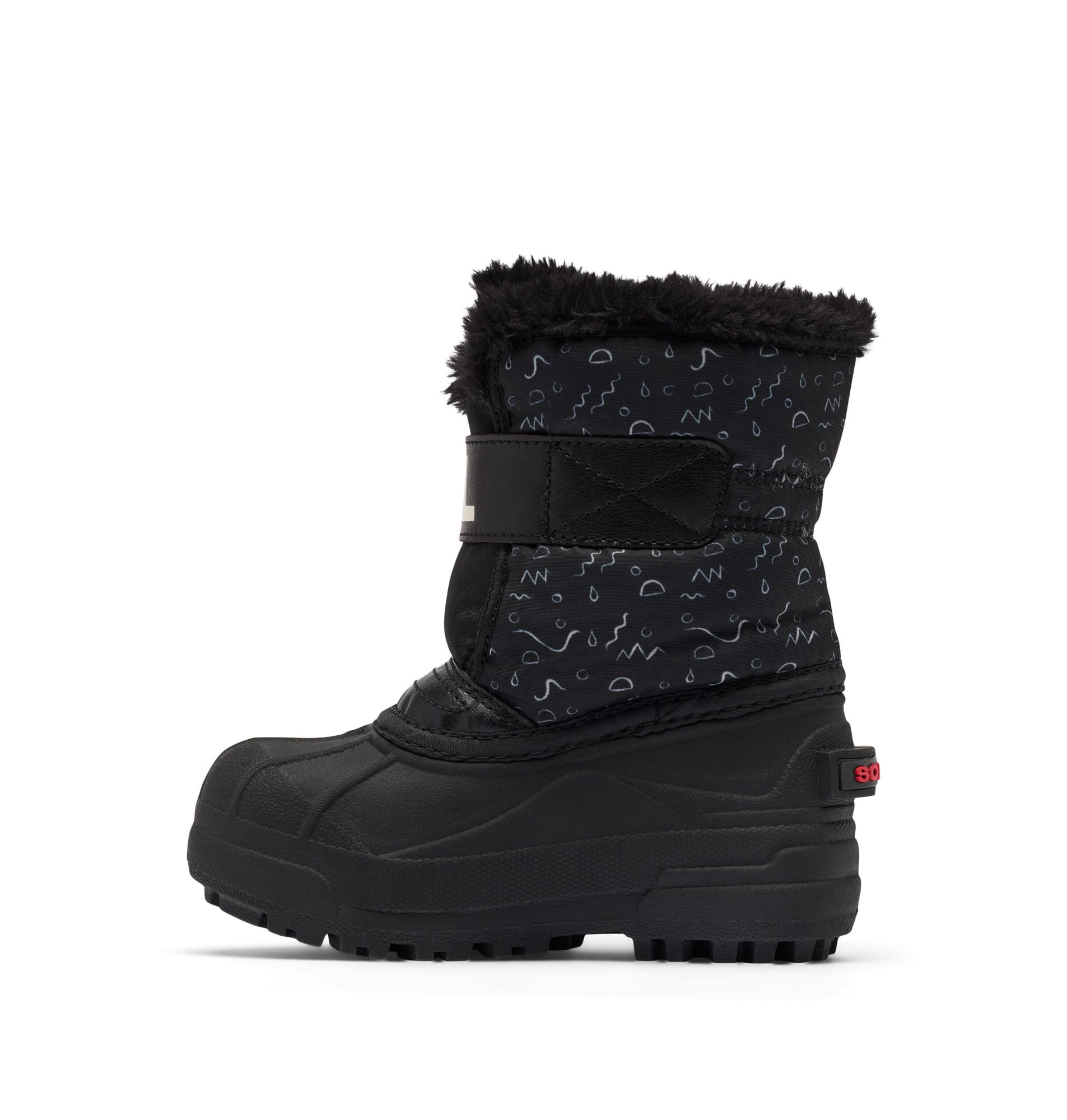 Description COMMAND THE SNOW They'll show the snow who’s boss with this ultra-warm boot. It features 200g of cozy insulation, plus a soft fleece lining, and easy-to-use velcro straps. The burly sole provides enhanced traction on slick terrain, whether they’re trudging up the sled hill or running away from snowballs.
