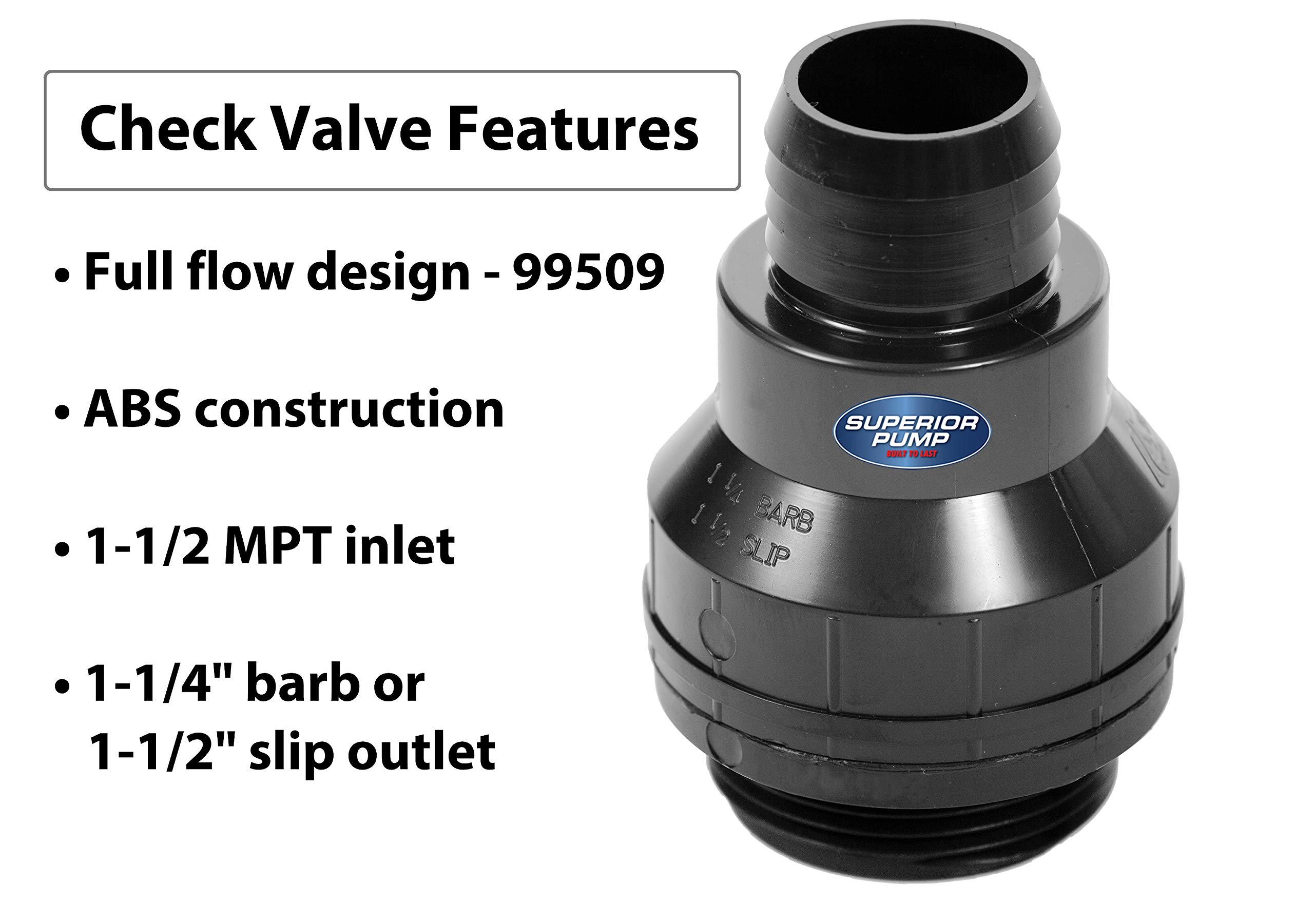 1-1/2 inch Inlet, 1-1/2 inch discharge, 1-1/2 inch vent and includes full flow check valve