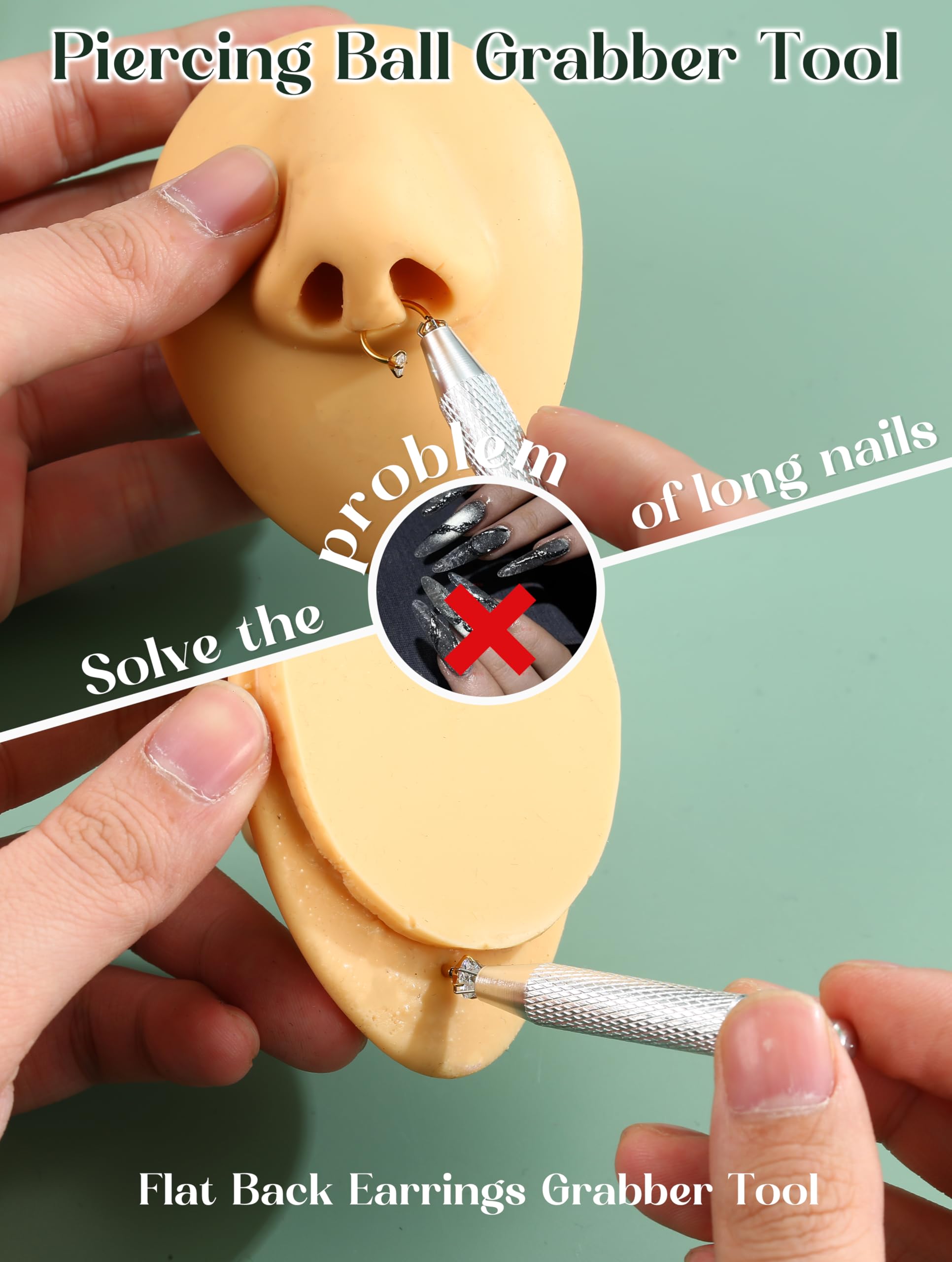 Sturdy Grabber Tool : The piercing ball grabber tool features a 4-claw design that securely grips small jewelry for women like balls, gems and flat back earrings — even with long nails or shaky hands. With neatly arranged claws, piercing grabber tool offer sturdy handling and precise control during piercing jewelry insertion or removal. And this piercing kit is easy to clean