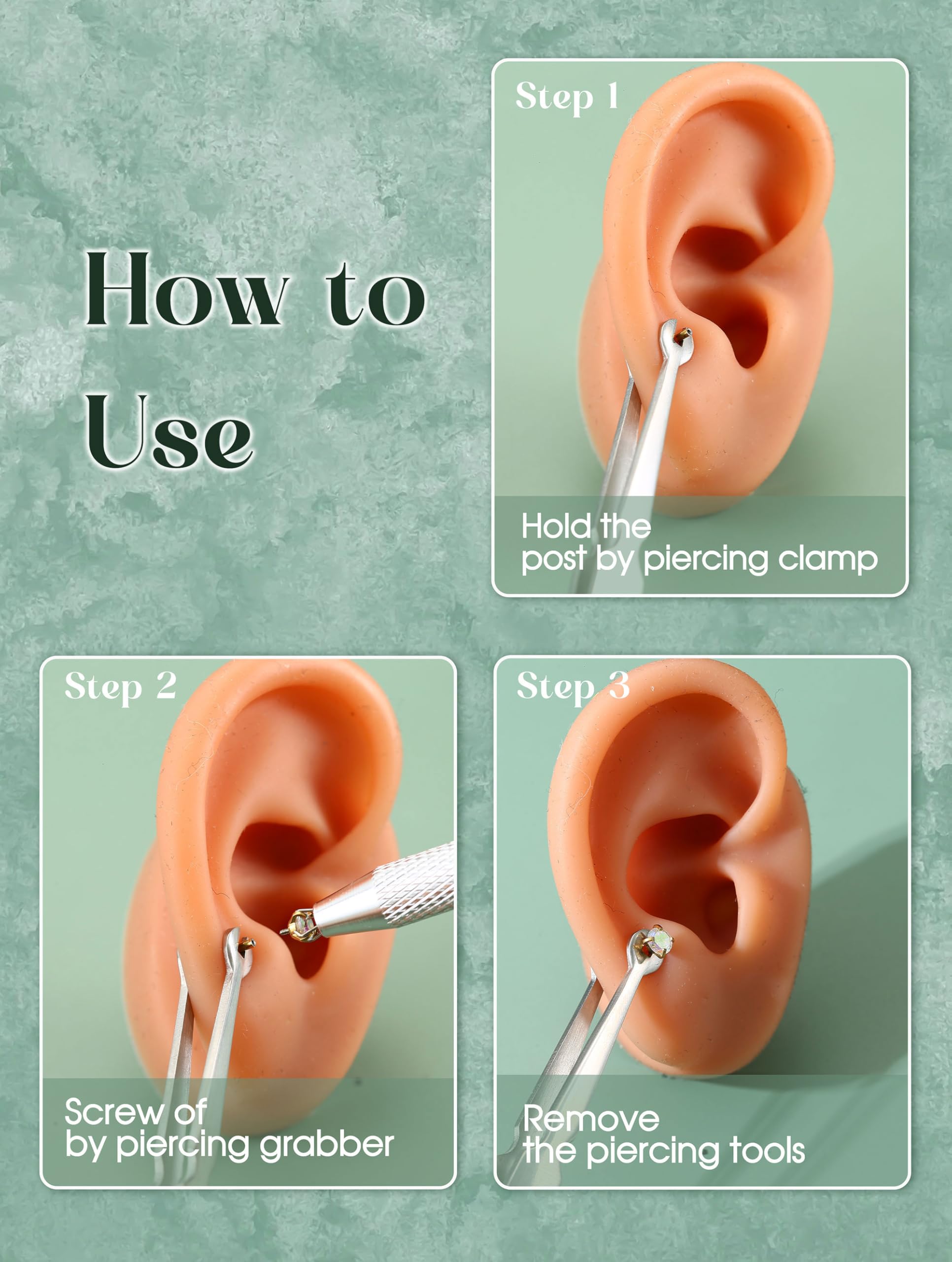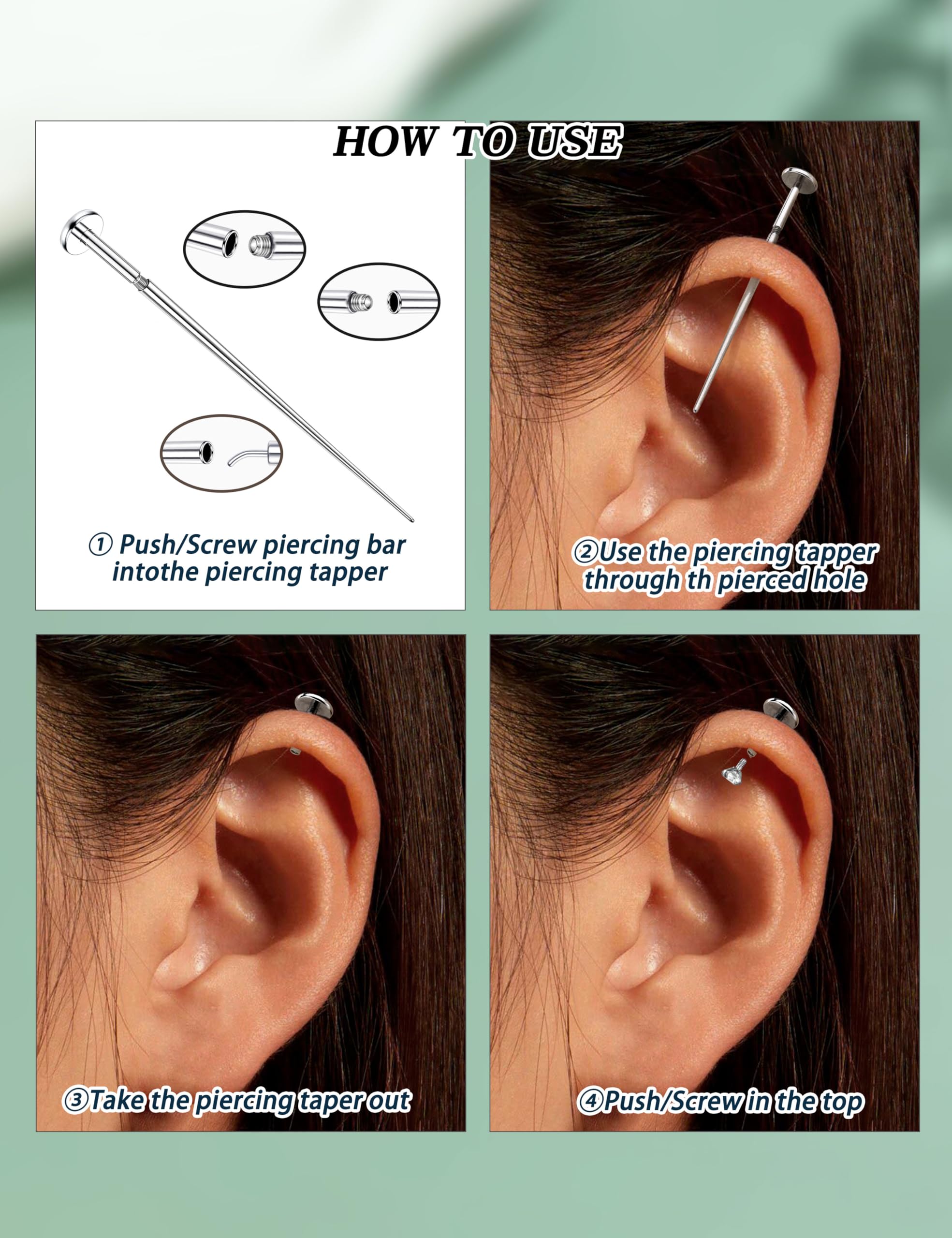 Easy to Use : This piercing kit simplifies the process of wearing and changing flat back earrings and more jewelry for women . First, use the piercing ball grabber tool to pick up small parts and insert the piercing taper halfway into the hole. Then, guide the body jewelry through. Final, remove the piercing insertion tool and secure the top. Each piercing changing tool is suitable for beginners