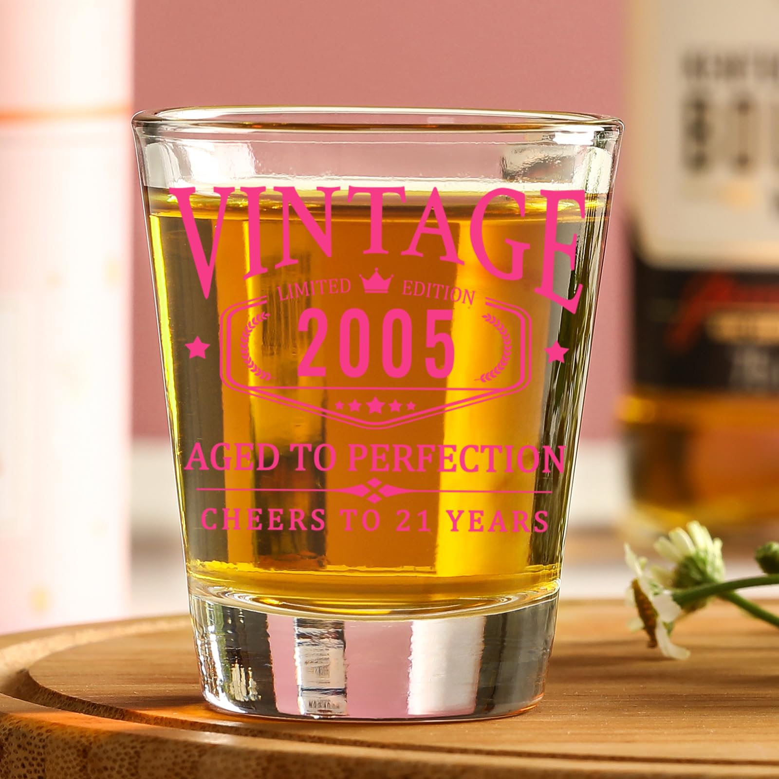 Unique Limited Edition Logo - The milestone shot glass cup, the unique '2005' sign represents the 21st birthday or 21st anniversary day. Great gift ideas for your friends, girfriend, classmate, sister, daughter or any other female who is 21 or turning 21 years old.