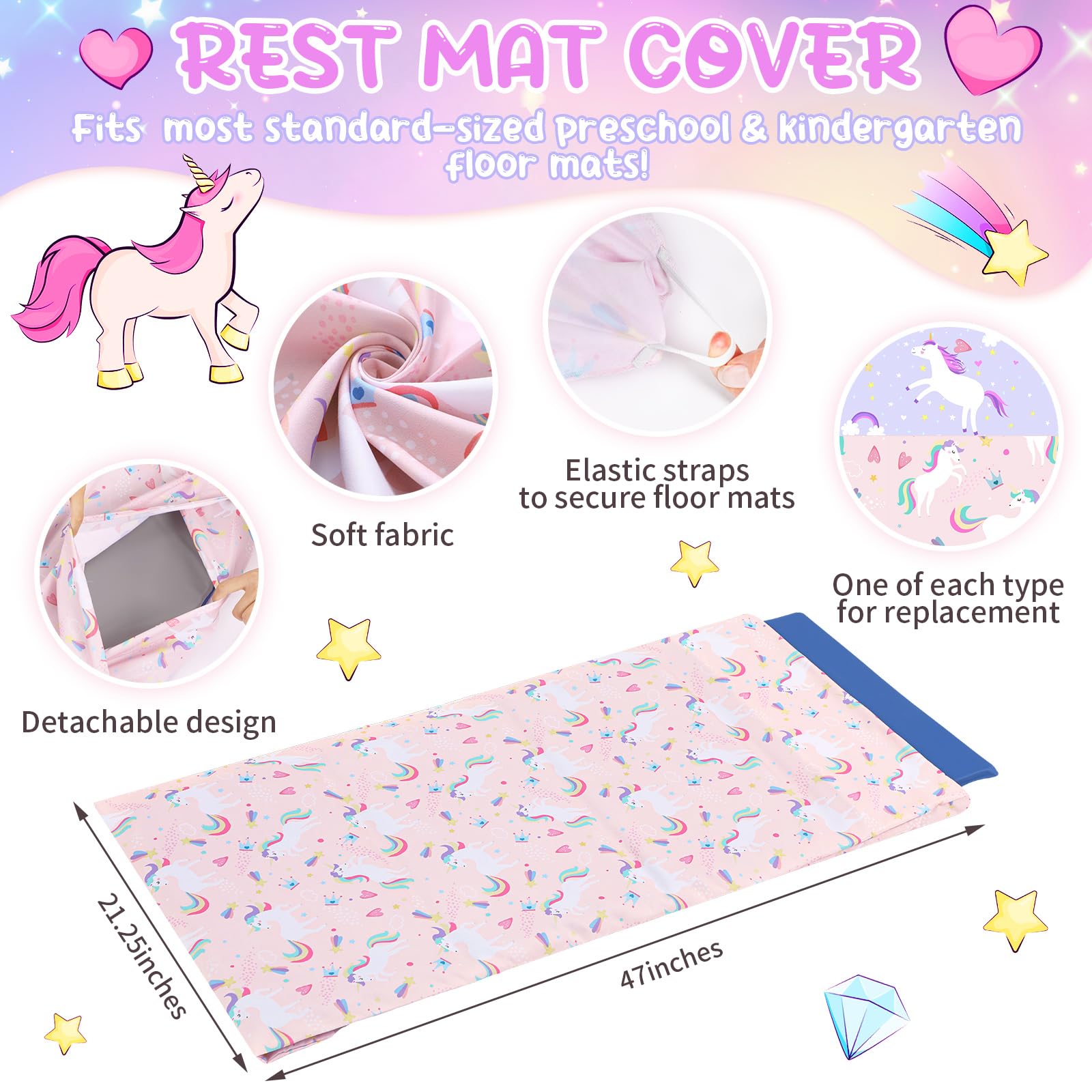 Unicorn Style: unleash the charm of unicorns; These rest mat covers sport a whimsical unicorn design that will captivate your little one's fantasy; The fun and cute style will stir your girl's imagination while offering a comfy rest