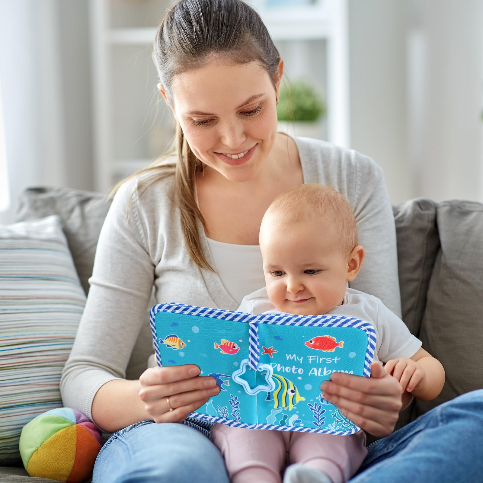 Adorable design: With its playful pattern of adorable fish, coral, and ocean bubbles, is not only visually appealing but also serves as a durable and soft photo holder for your little one's first pictures. The cover is printed with the words "MY FIRST Photo Album" in a stylish font, making it the great way to document your baby’s growth and family moments. The simple yet elegant design makes it a timeless keepsake for both parents and little ones.