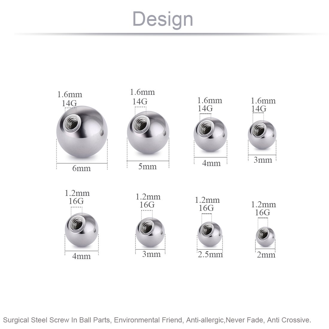 Size: Bar Diameter is 16G(1.2mm )&14G(1.6mm), Ball 2 2.5 3 4 5 6mm