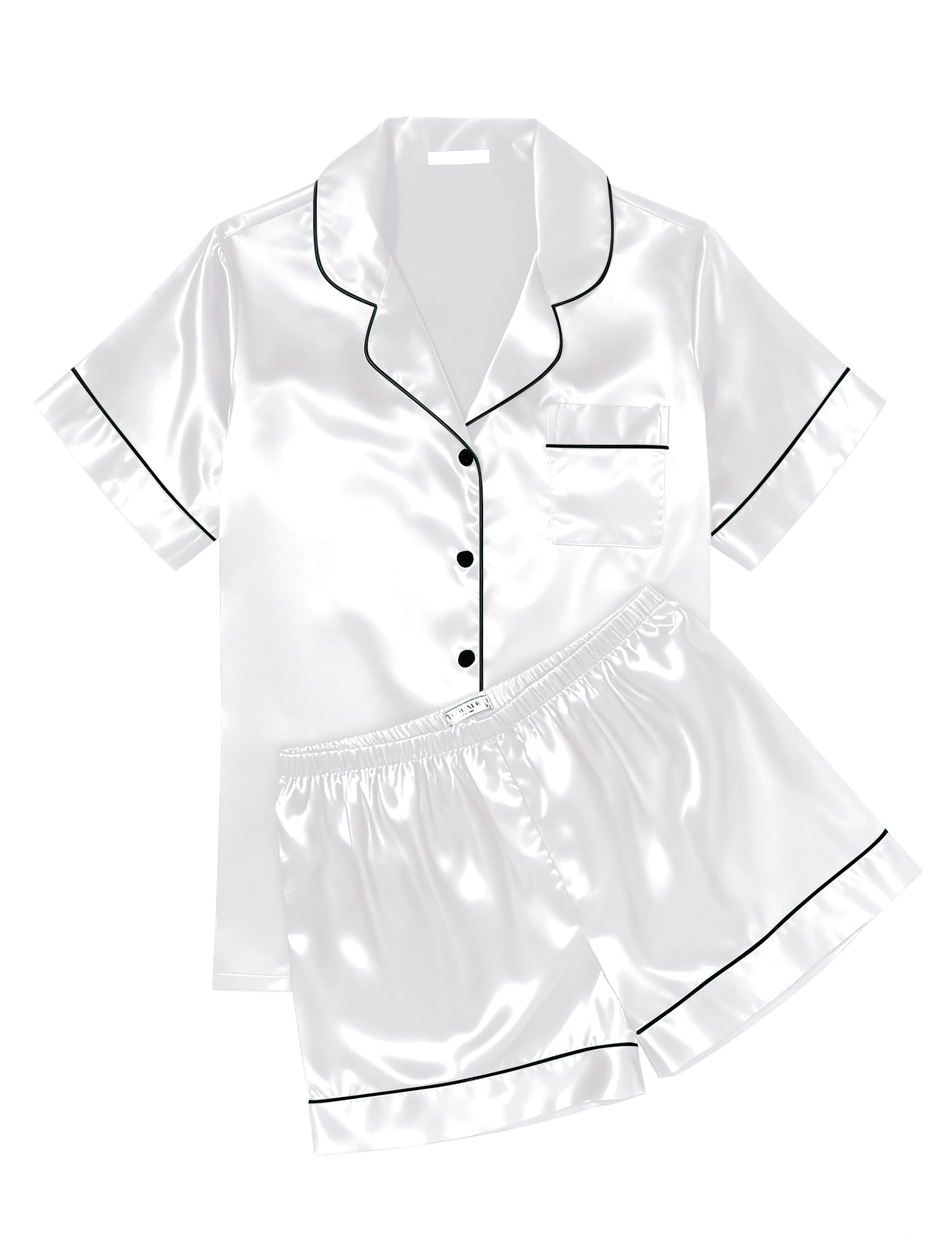 Product Features:Two Piece Pajama Set featuring classic sleepwear style.Short sleeve sleepwear top and pajama shorts set. Premium ultra soft silk satin material in very high quality and this sleep set with superior stitching and perfectly-lined hems. Breathable and Comfy sleepwear set. Wash Care: Hand wash separately in cold water is recommended.