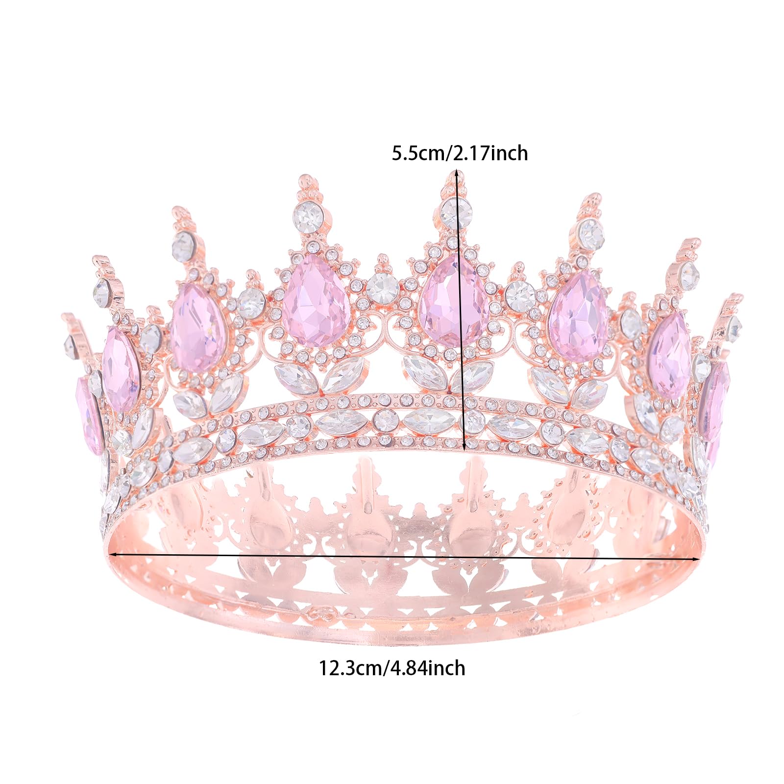 Size and Package: Our tiara crown are suitable for adult women and, Diameter about: 4.72 inches, Height about: 2.0 inches, Weight about: 0.344 lb. The package includes clear box and four clips to fix the crown on your head and brings you a long and comfortable wearing experience.