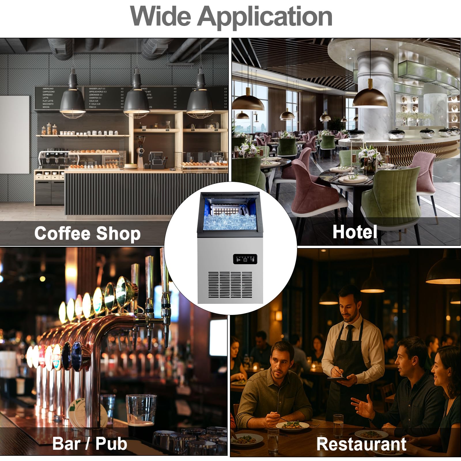 【Premium Stainless Steel Housing & Dual-Layer Insulation】Built with food-grade stainless steel for durability, corrosion resistance, and a sleek professional look. The inner compartment is wrapped in a double-layered foam insulation system, preserving ice longer and improving energy efficiency. Suitable for home kitchens, cold drink kiosks, bakeries, convenience stores, and more commercial settings.
