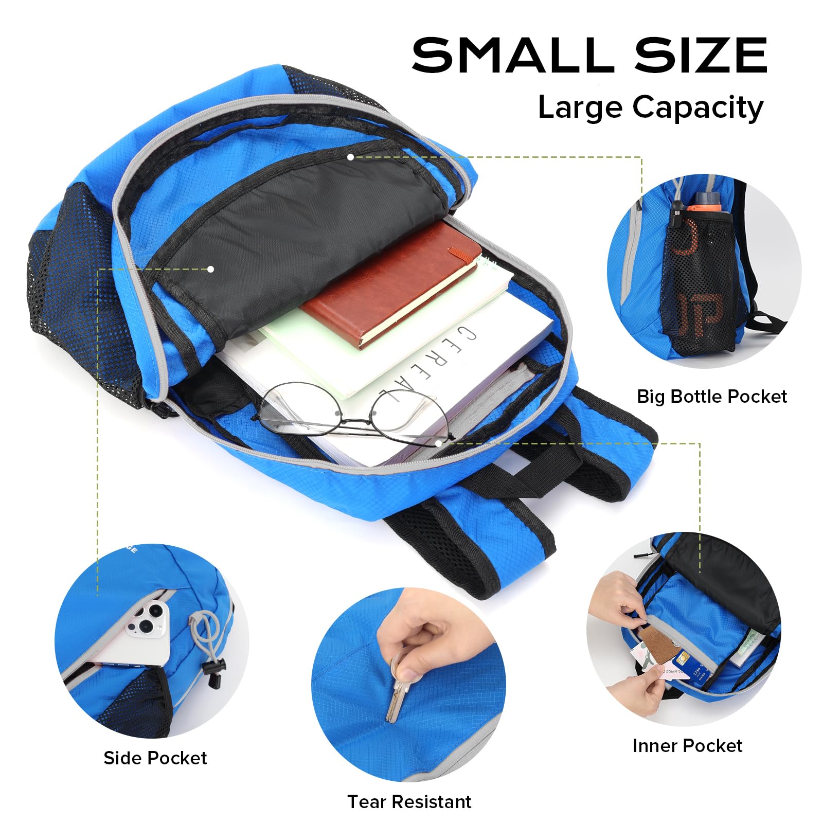 Foldable into a Pouch and Compact : When not in use, hikers can easily fold this collapsible small back pack into its inner pocket, as small as a palm, which can be easily packed into your bag or suitcase, providing additional storage space to carry extra gear or souvenirs