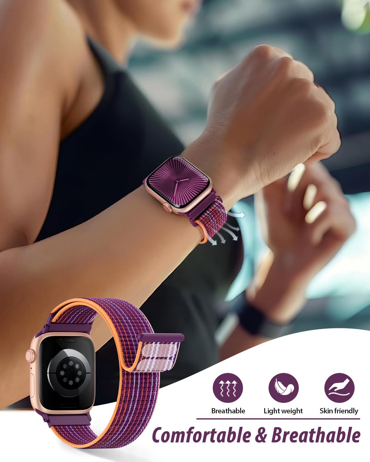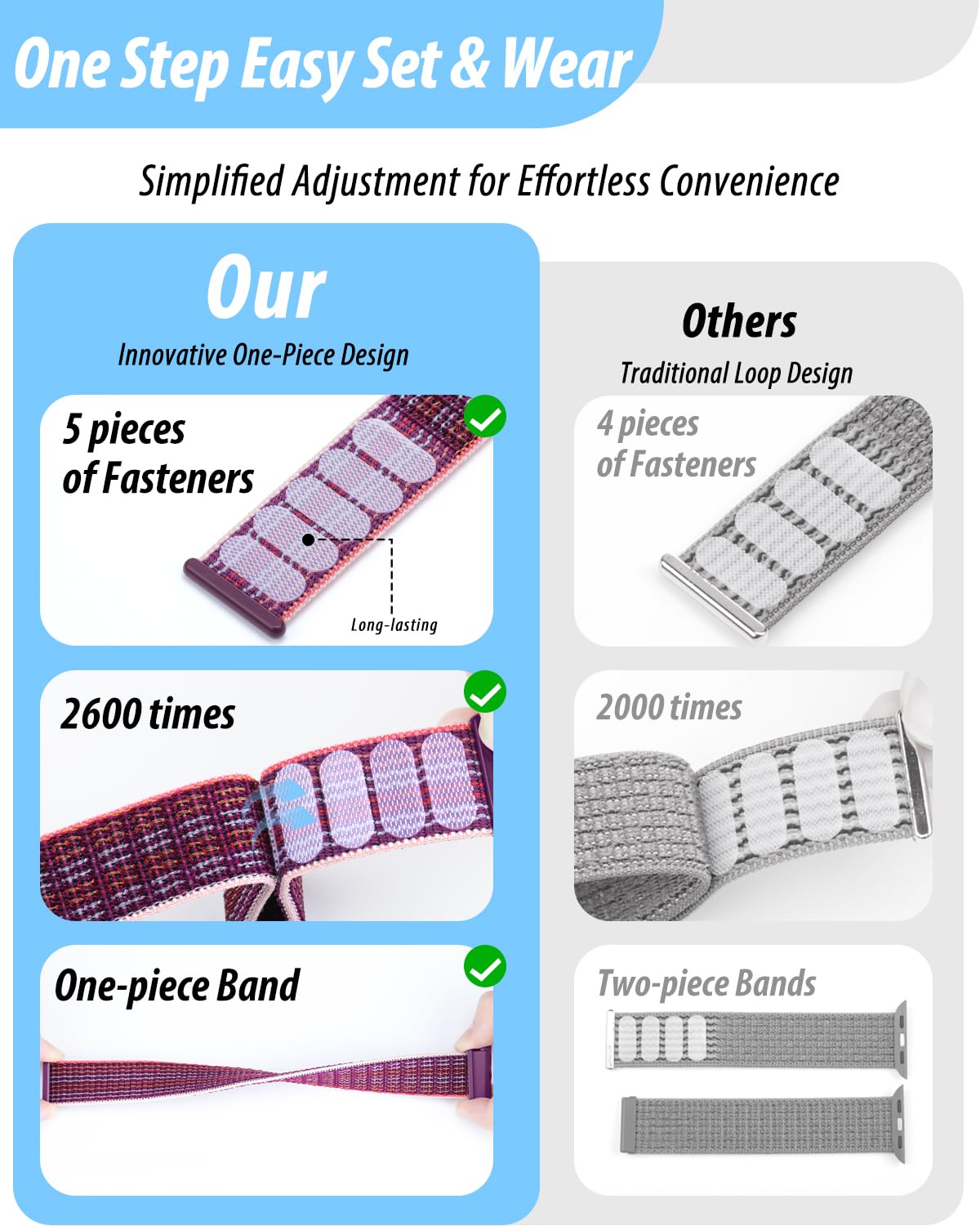 [Easy to Wear]: Our iWatch bands for women men feature a magic tape closure for easy, one-handed length adjustments, ensuring a snug fit during workouts and outdoor adventures. Durable, breathable, and comfortable, they keep your smartwatch securely in place no matter how active you get