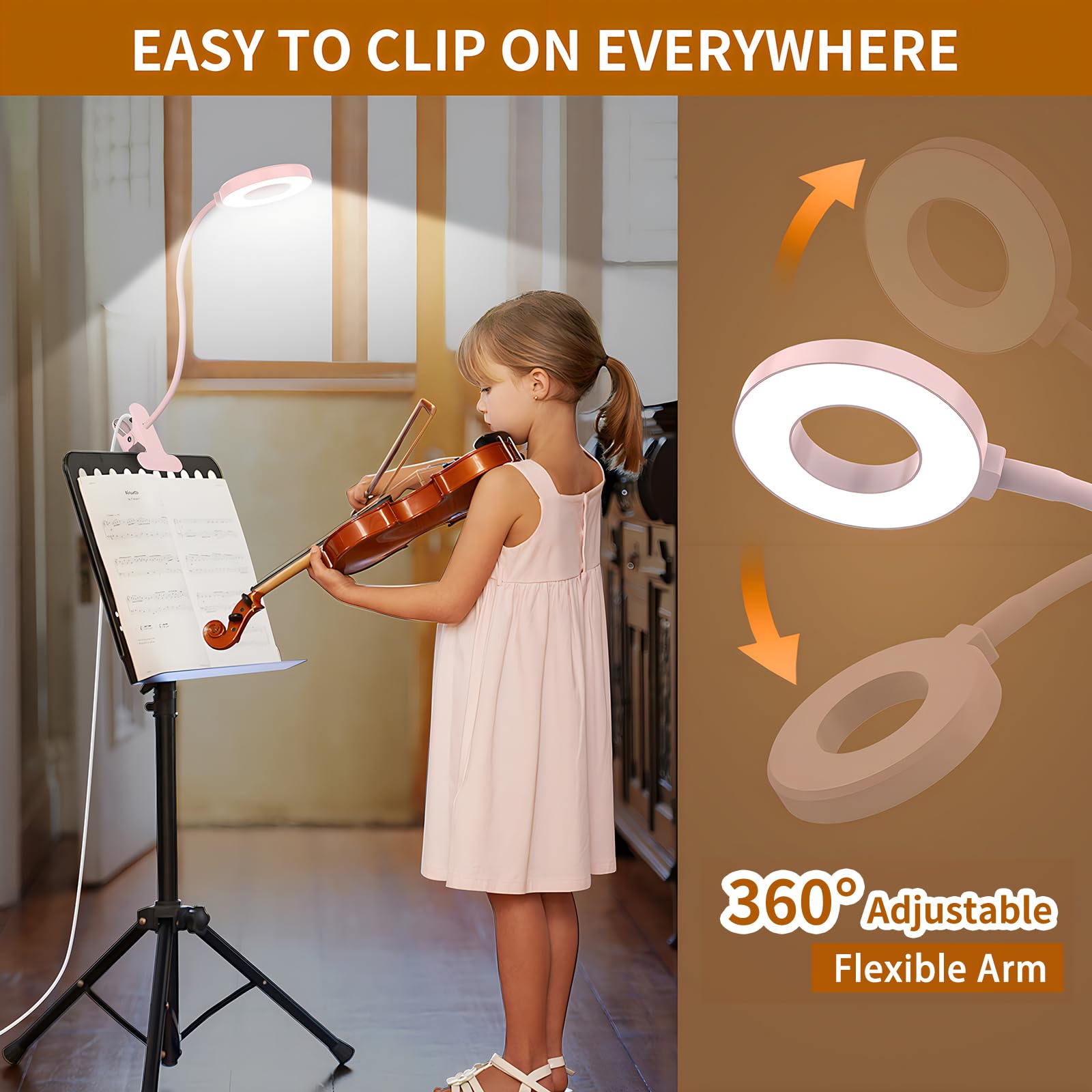【FLEXIBLE ARM & STURDY CLIP】- This pink desk lights for home office has a 15.8-inch length of 360° flexible arm, allowing you to easily adjust the direction of light, as well as the height and distance. The sturdy clamp can opens up to 2.3-inch, which is very easy to clip on anywhere you want, not only for tables, bed and headboards.