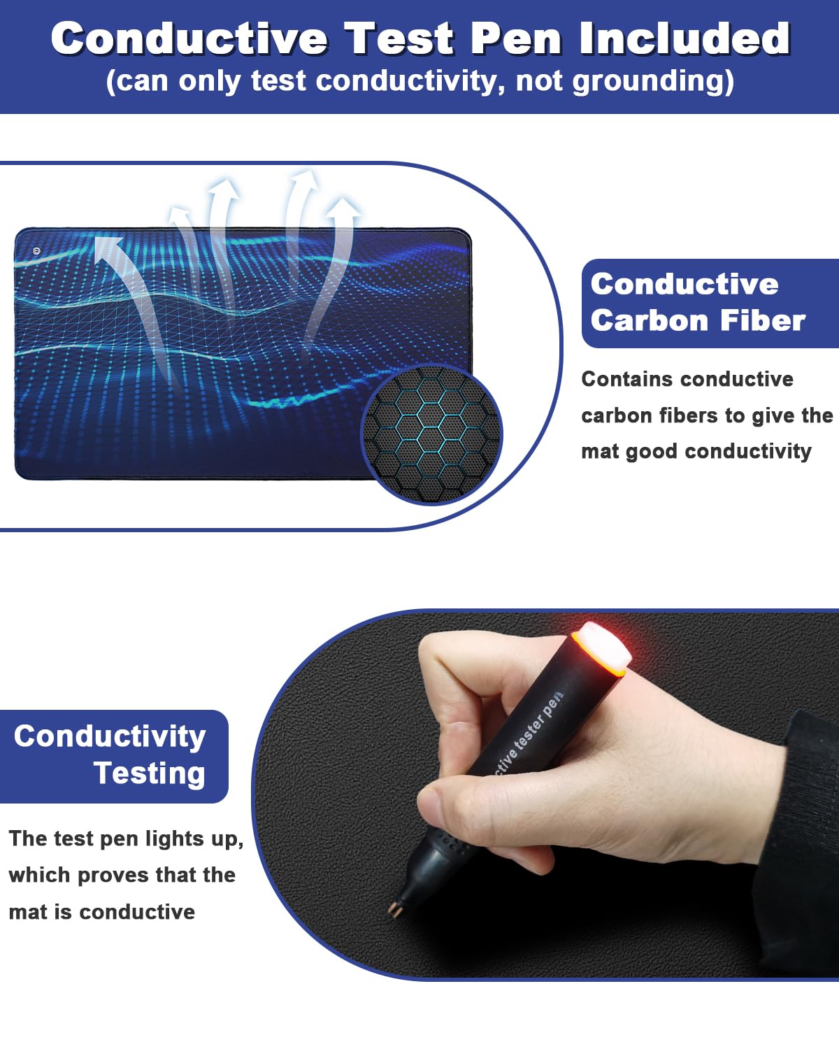 Features : Strictly selected premium leather, carbon fiber has high conductivity and can effectively reduce static electricity. Universial grounding mat,earth connected mat, it's a good choice to choose it as grounding mat for desk