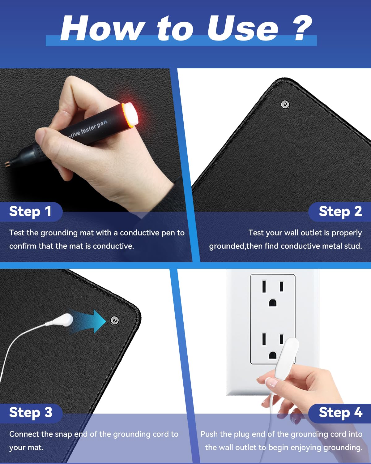Usage : Our grounding mats come with a 15-foot universal grounding wire.Just use the grounding wire to connect the grounding mat to the wall grounding hole and you can allow Earth energy into your body