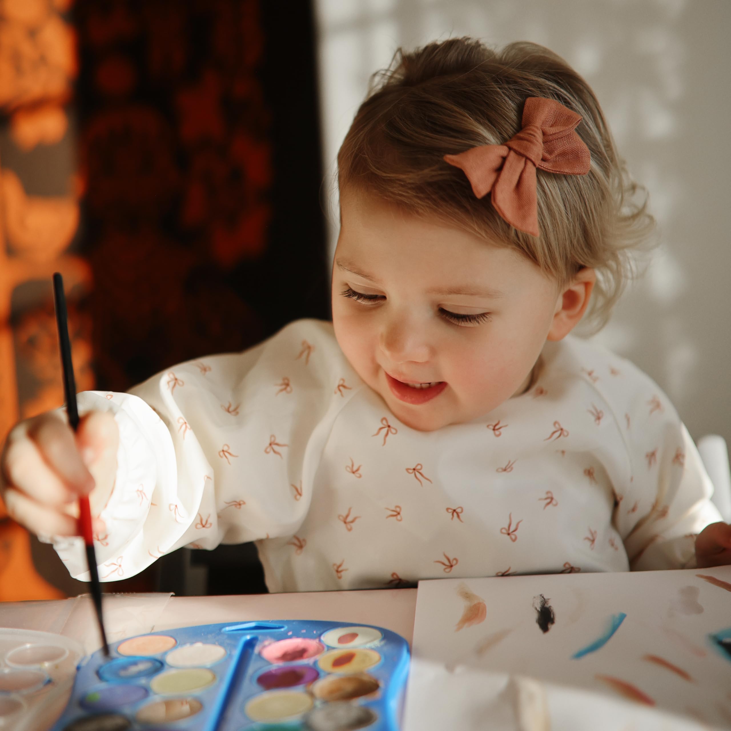 Mess & Worry Free: Keep the kids clean at mealtimes, during art projects or in other messy moments with the mushie water resistant long sleeve bib.