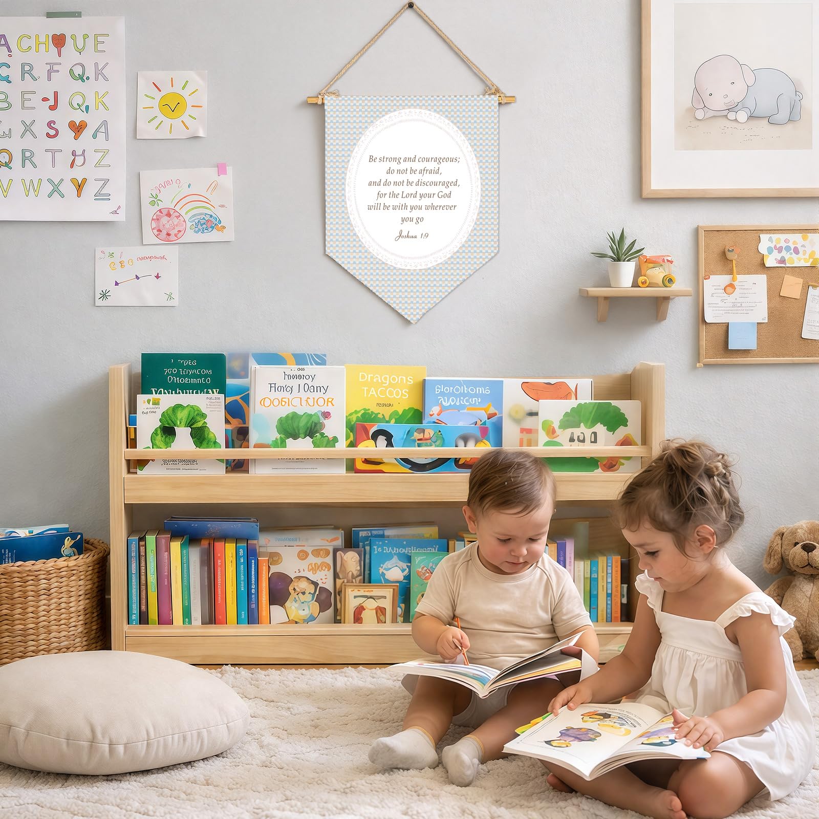 Durable natural cotton canvas banner adds lively color and cozy texture to nursery baby room wall decor, fade-resistant to stay bright year after year. Size 15.4" x 11" fits small or big spaces, perfect on a nursery wall, bookshelf, in a kids room, playroom, teen room, or reading nook. Ready to hang with pre-tied twine and 1 wooden stick, lightweight and easy to remove. A heartfelt gift for baby shower, birthday, Christmas, New Year.
