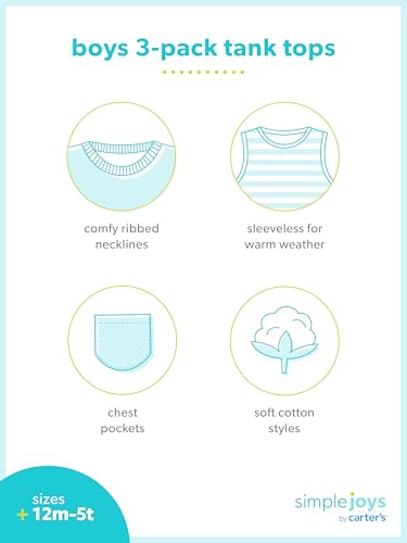 Description This Baby and Toddler Boys 3-Pack Muscle T-Shirt set from Simple Joys by Carter’s offers unbeatable value and comfort for your little one’s wardrobe. Each set includes three stylish muscle tees in a range of fun prints and vibrant colors, perfect for active days at the park or casual outings. Crafted from soft, breathable fabric, these tees provide all-day comfort while keeping your child cool and stylish. With a variety of playful designs, your little guy will love mixing and matching his favorites. Easy to care for and built to last, this set is a must-have for everyday wear, making it a practical and affordable choice for parents who want both quality and style.