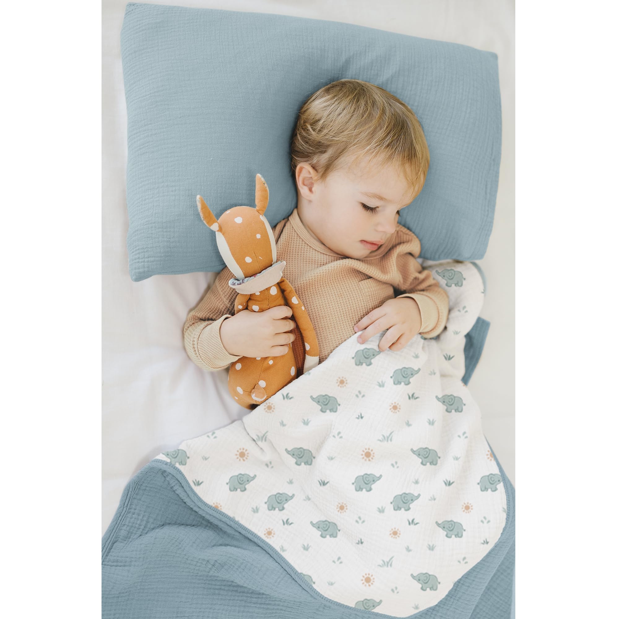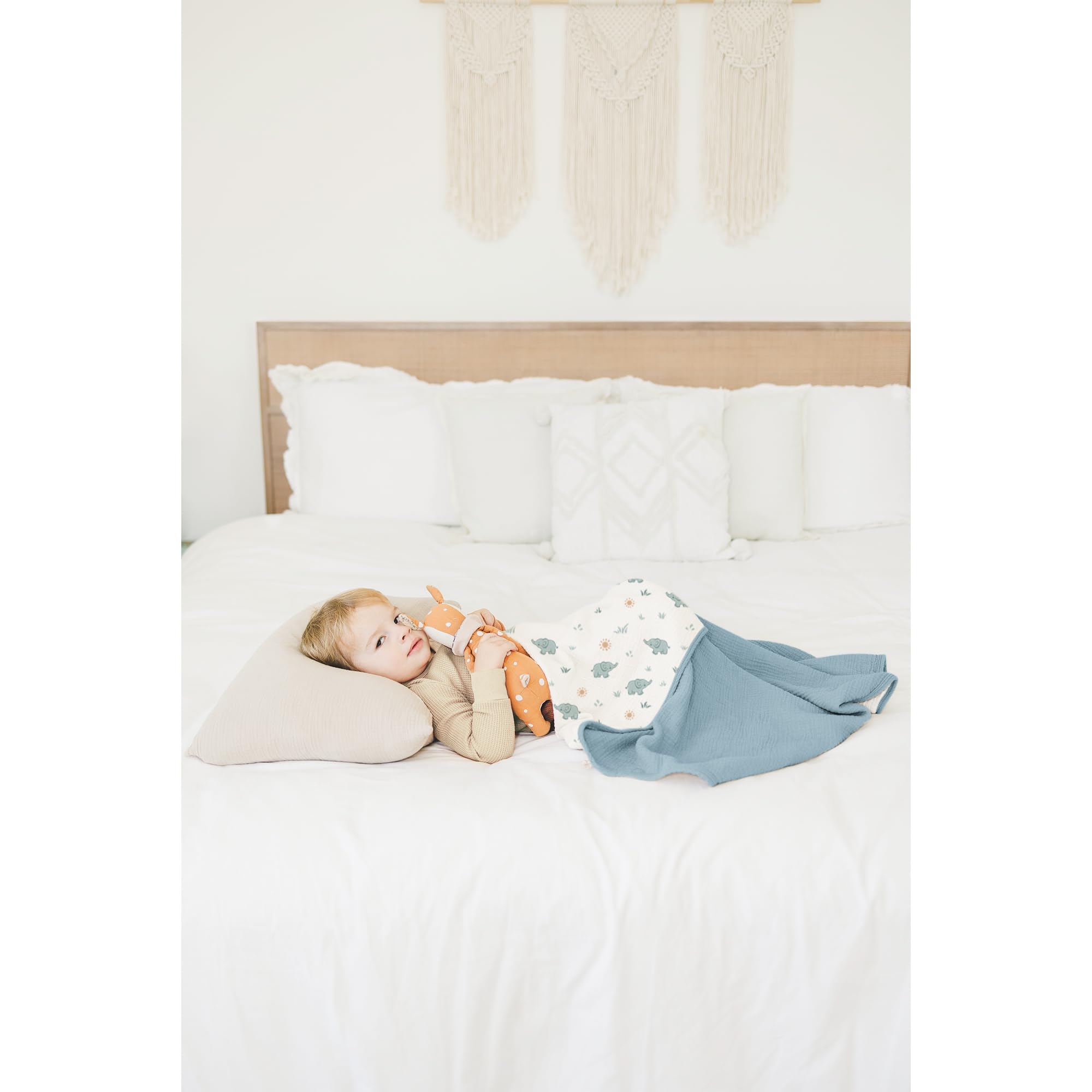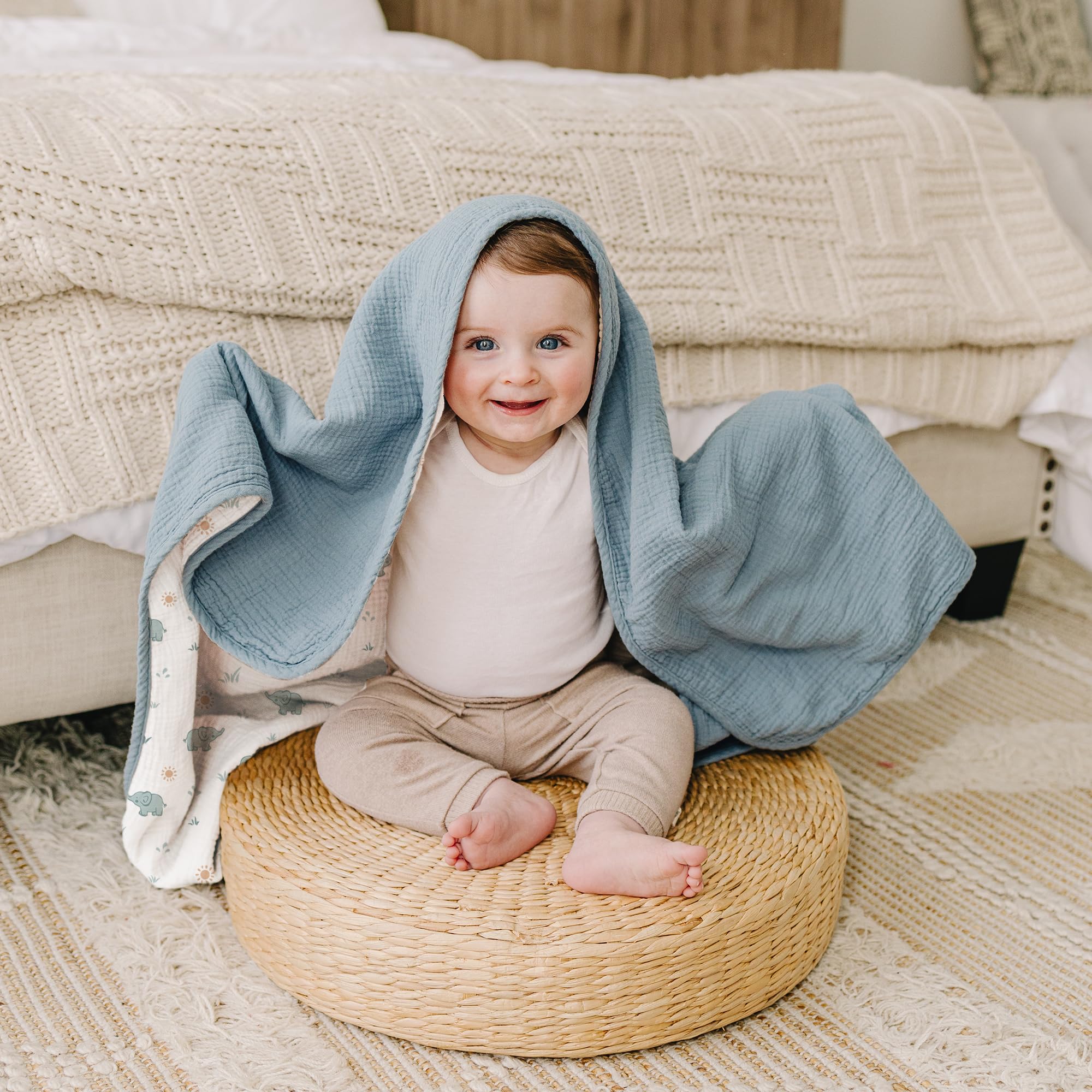 Versatile Use: This blanket is generously sized at 40x36 inches to provide ample coverage to keep your toddler cozy and content. Whether it's for naptime, cuddling time, or simply snuggling up on the couch, our muslin toddler blanket is perfect for any occasion.