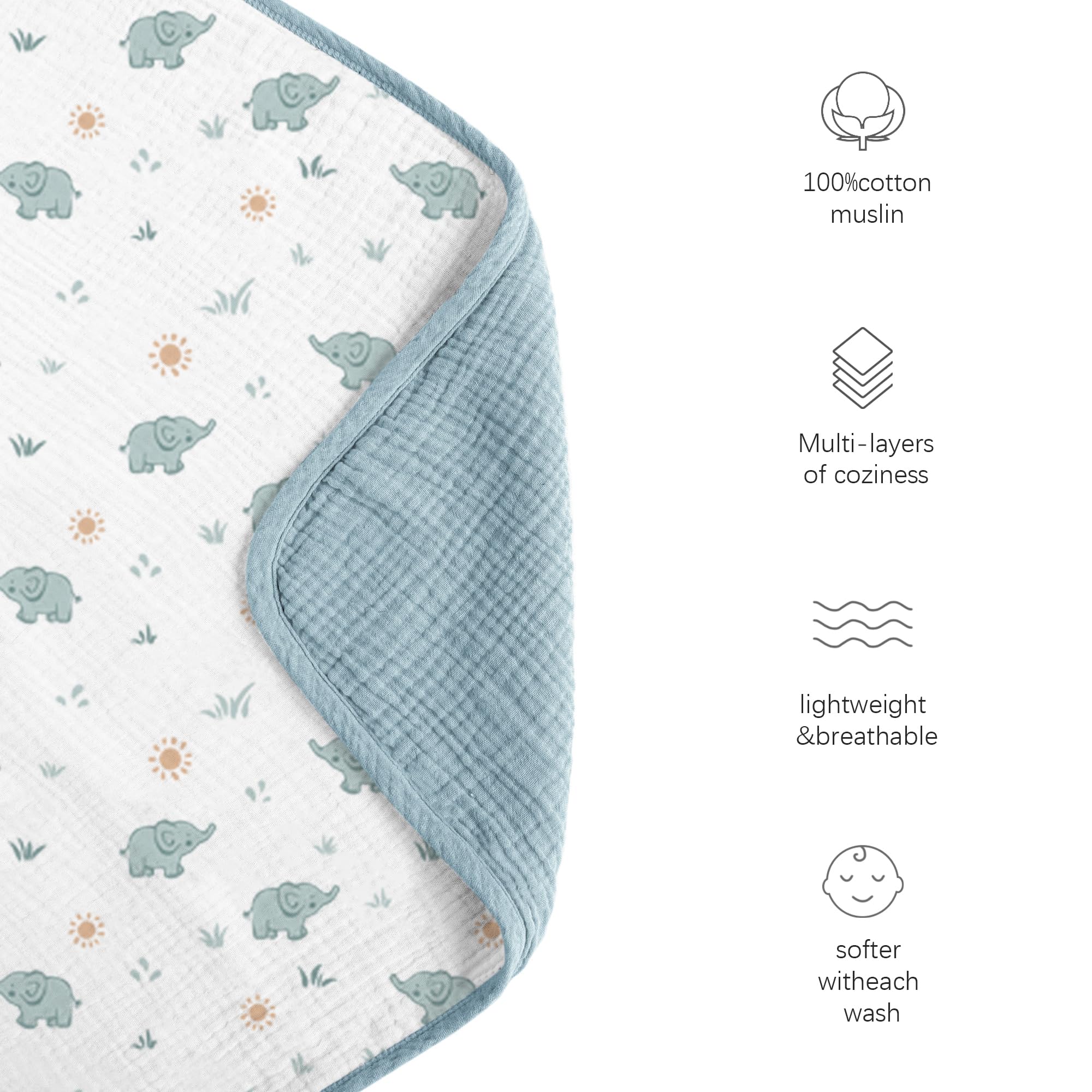 Superior Softness: Crafted with care from high-quality muslin fabric, our toddler blanket is super soft and are gentle on your child's delicate skin. The soft material would be softer as the time goes by.