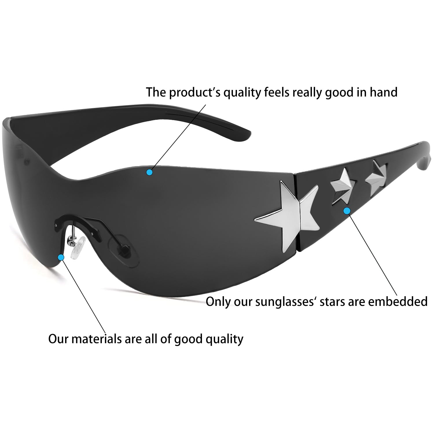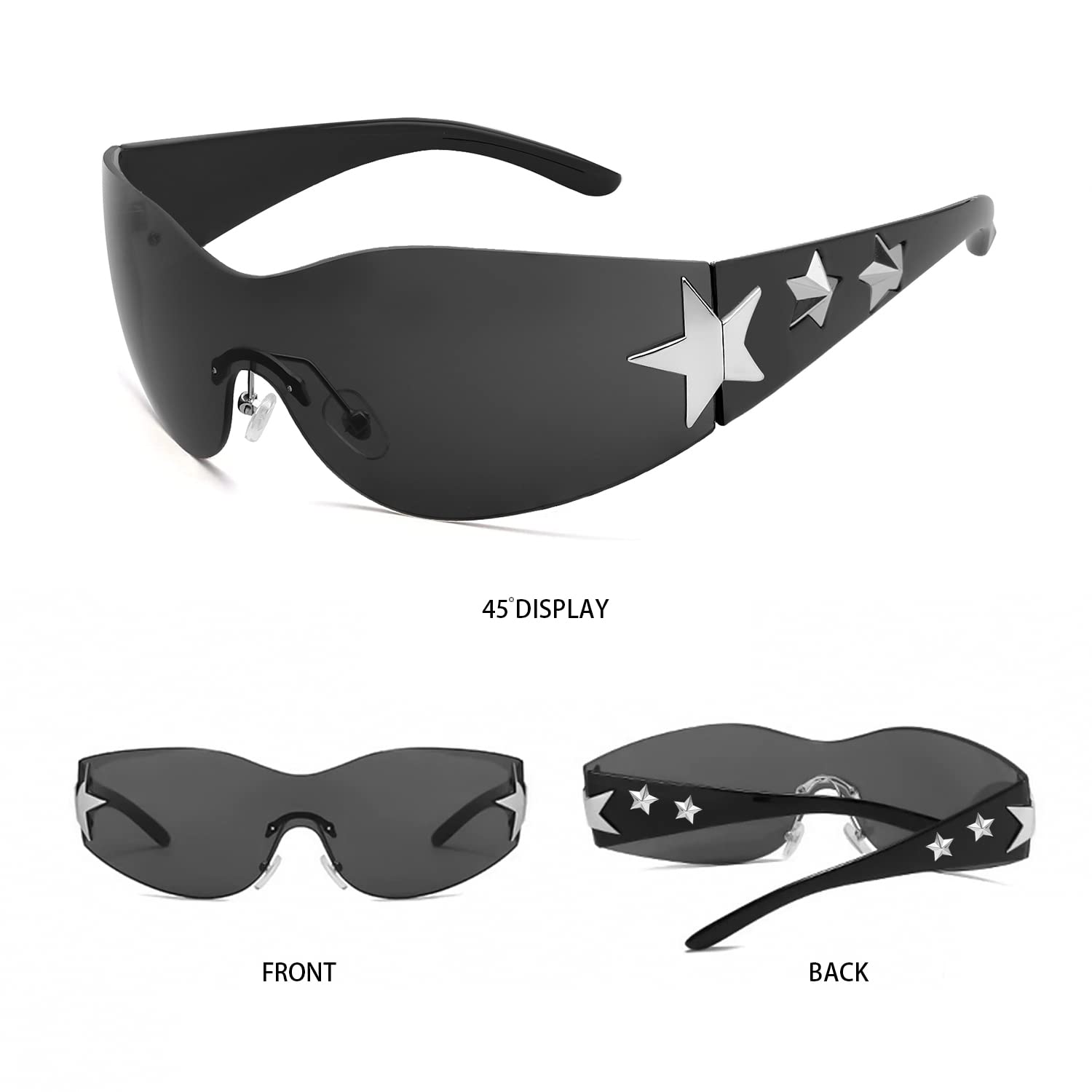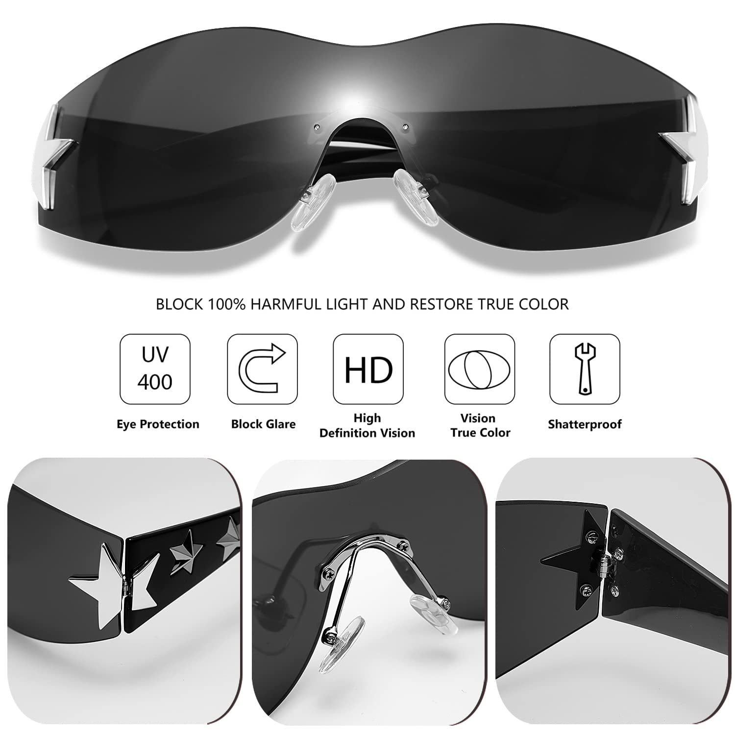 2000S AESTHETIC DESIGN: Oversized frameless shield design lens can wrap your eyes in all directions, great fit the contours of your face, very stylish and a must-have accessory for y2k