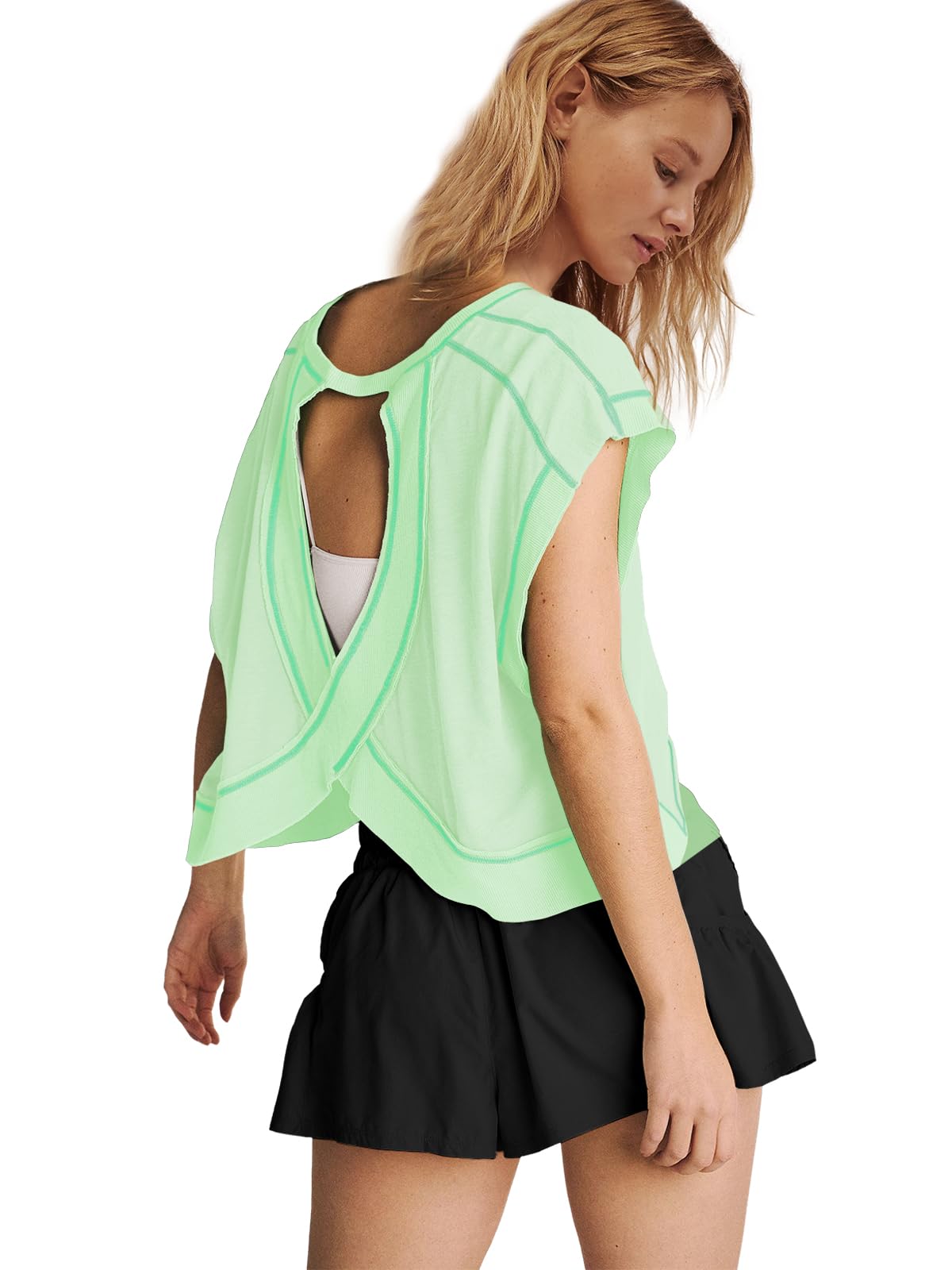 Fit: Please order your regular US size. The workout tshirts for women is an oversized style that not only flatters your figure but also pairs effortlessly with any outfit. If you want a more comfy loose fit for this womens open back tops, suggest ordering one size larger.