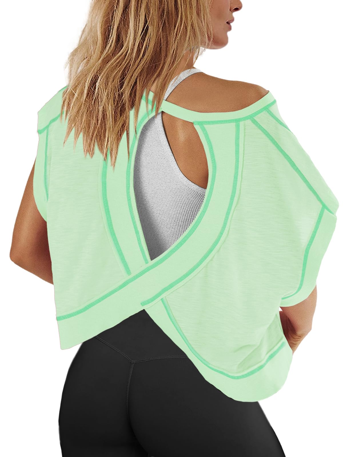 Occasion: Embrace comfort and style effortlessly. This short sleeve open back tops is perfect for going to or from a workout, this tee features a soft fabrication, slouchy crop and flattering back opening. Its adaptability blends seamlessly with your lifestyle.
