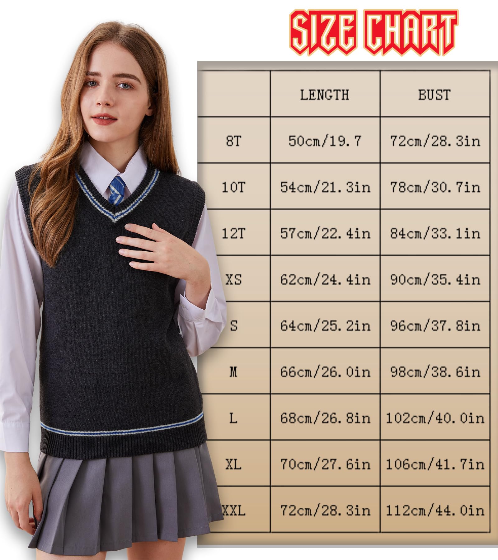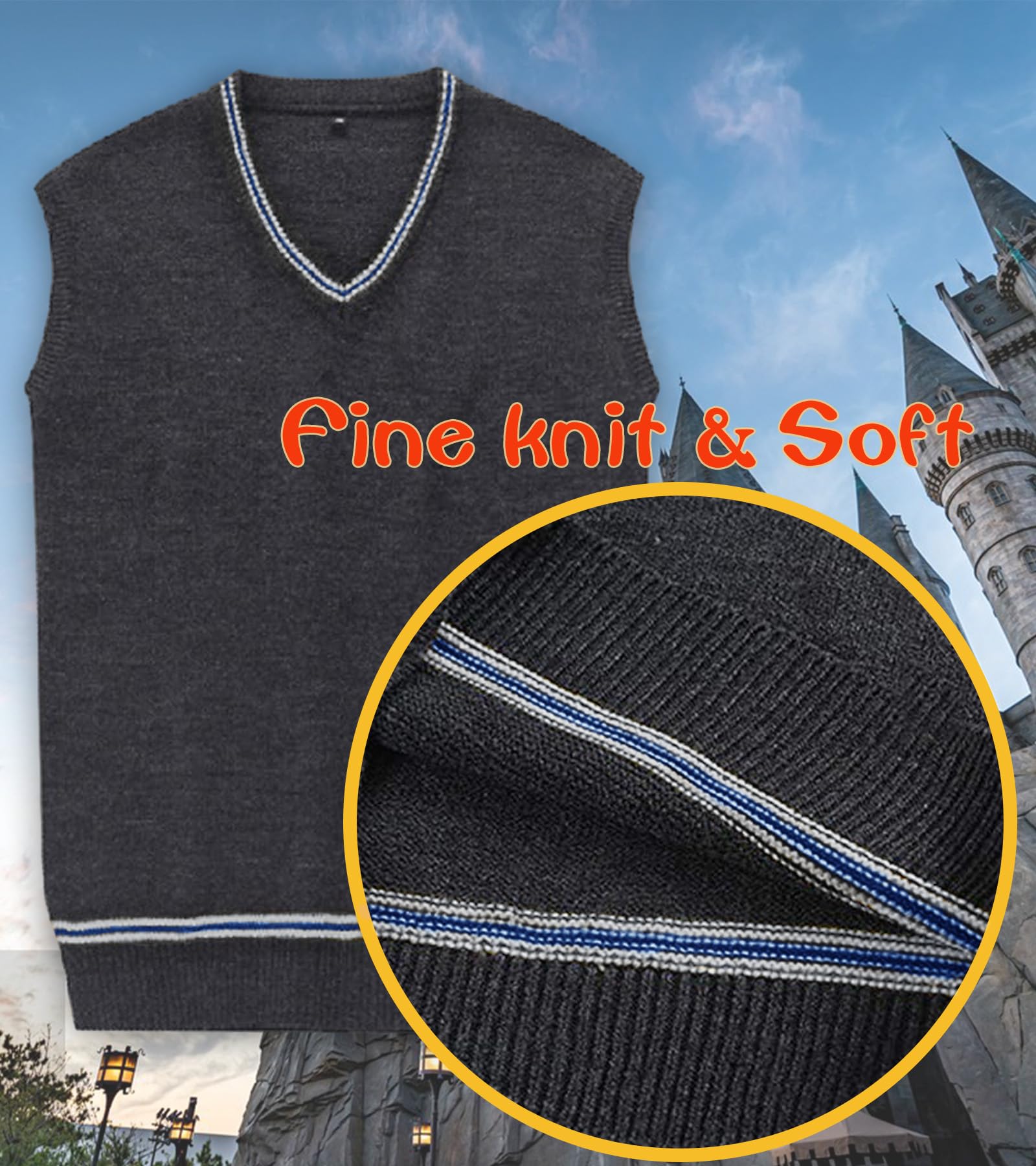 🪄Features: Knitted striped fashion vest, sweater. v-neck, sleeveless, classic cosplay college costume.Everyone loved it!Perfect for the cosplay,lets incorporating it in some of our everyday outfits!