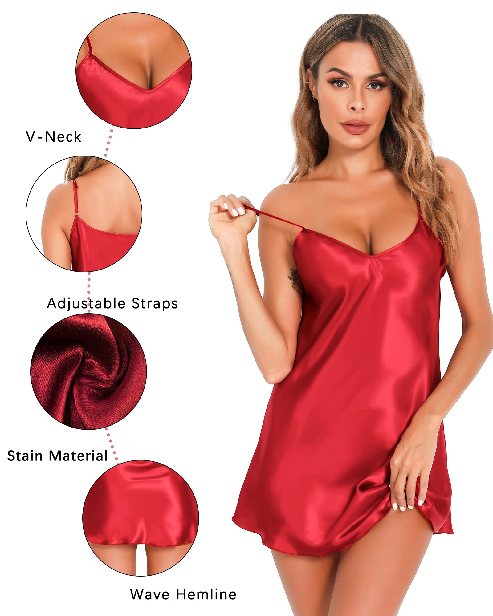 【Multiple Occasions】: Women silk sleepwear perfect for honeymoon, date night, lingerie party, bridal party,christmas party,anniversary, engagement party, vacation, beach,valentine's day, sleeping,lounging,daily wear,boudoir shoot, bedroom.It's great gift for your girlfriend, wife, mother or friend or yourself