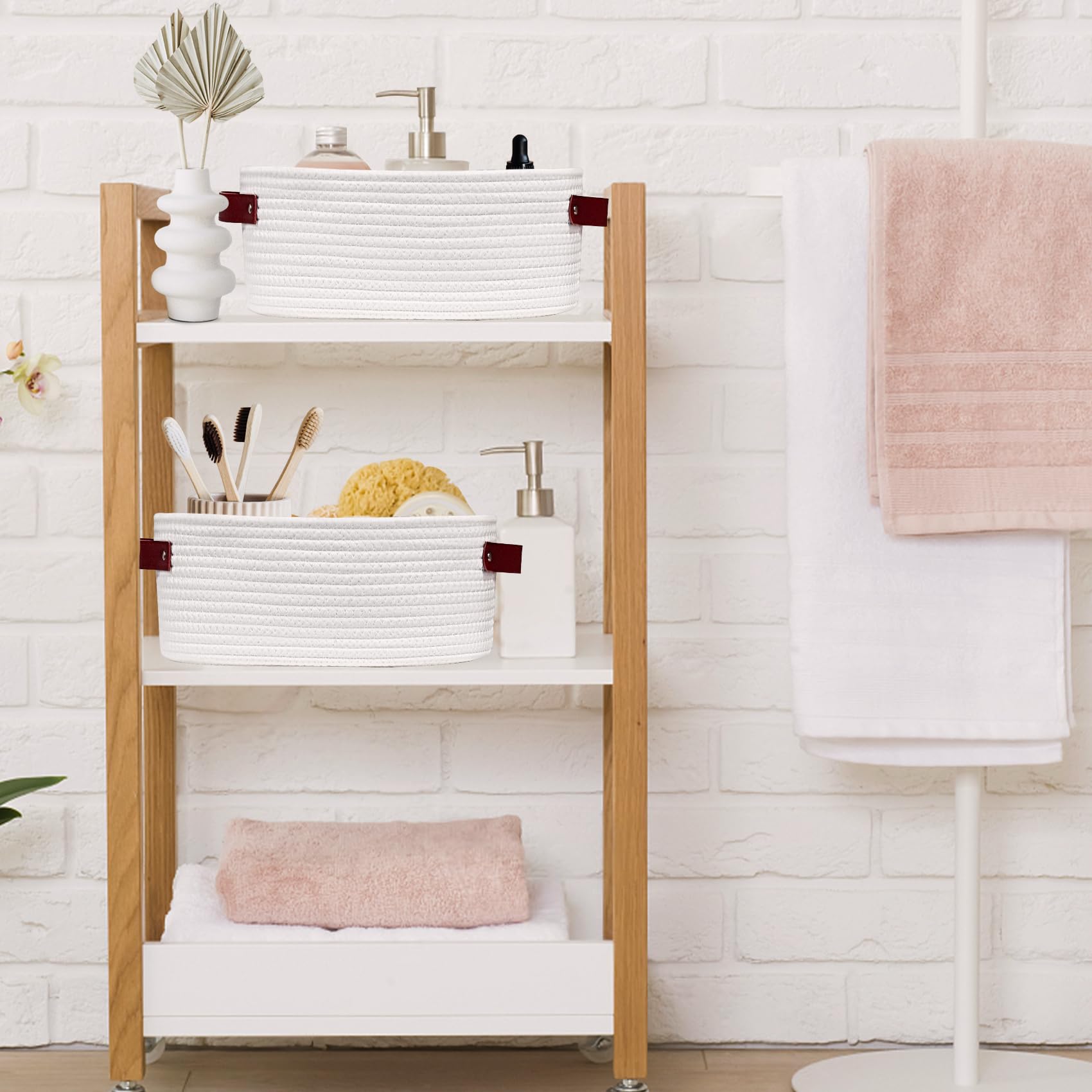 Small baskets for organizing, keep spa essential, fruits, remote control, towel, diaper, blanket, toy, nursery necessaries, make-ups organized in order. Even can be used as dog cat basket