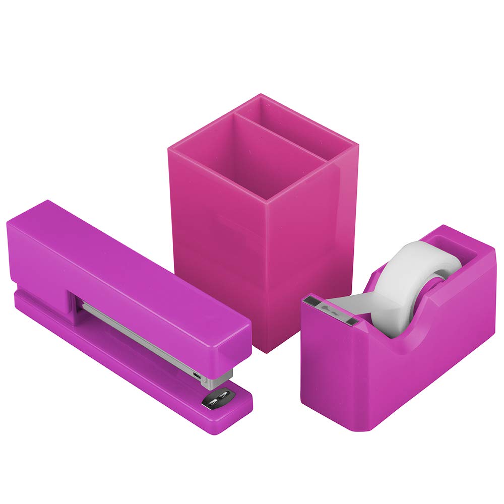 Quantity: (1) Stapler, (1) Tape Dispenser (tape not included), (1) Pen Holder
