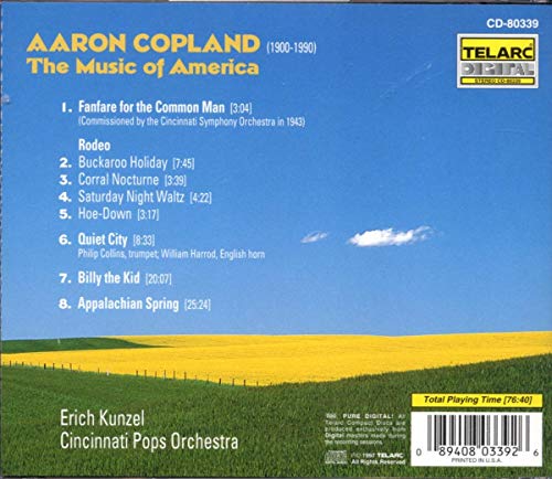 Amazon.com When it comes to light, folk-flavored listening, the music of Aaron Copland is some of the best and most popular. When it comes to crowd-pleasing conducting, Erich Kunzel is one of the great successes. This album contains most of Copland's essential compositions, in all or part: "Fanfare for the Common Man," four movements from "Rodeo," "Quiet City," "Billy the Kid," and "Appalachian Spring." All are performed in fine form; it would be nice to have all of "Rodeo," but this is otherwise all the Copland that most folks will need, and in one package. --Sarah Bryan Miller