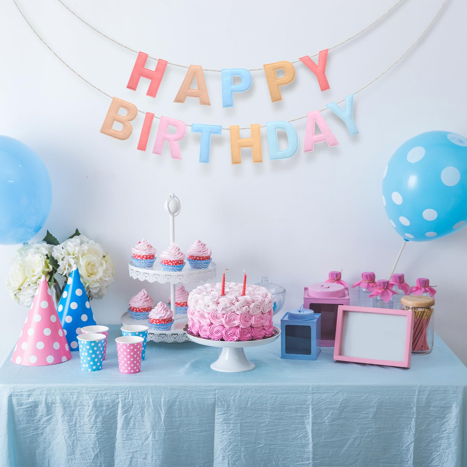 Multi Purpose Birthday Decor: with its lightweight design, our felt happy birthday banner garland provides a easy installation for both indoor and outdoor celebrations; Be it on mantels, railings, windows, dessert tables, or even as a photo background, our banner infuses an energetic and vibrant atmosphere