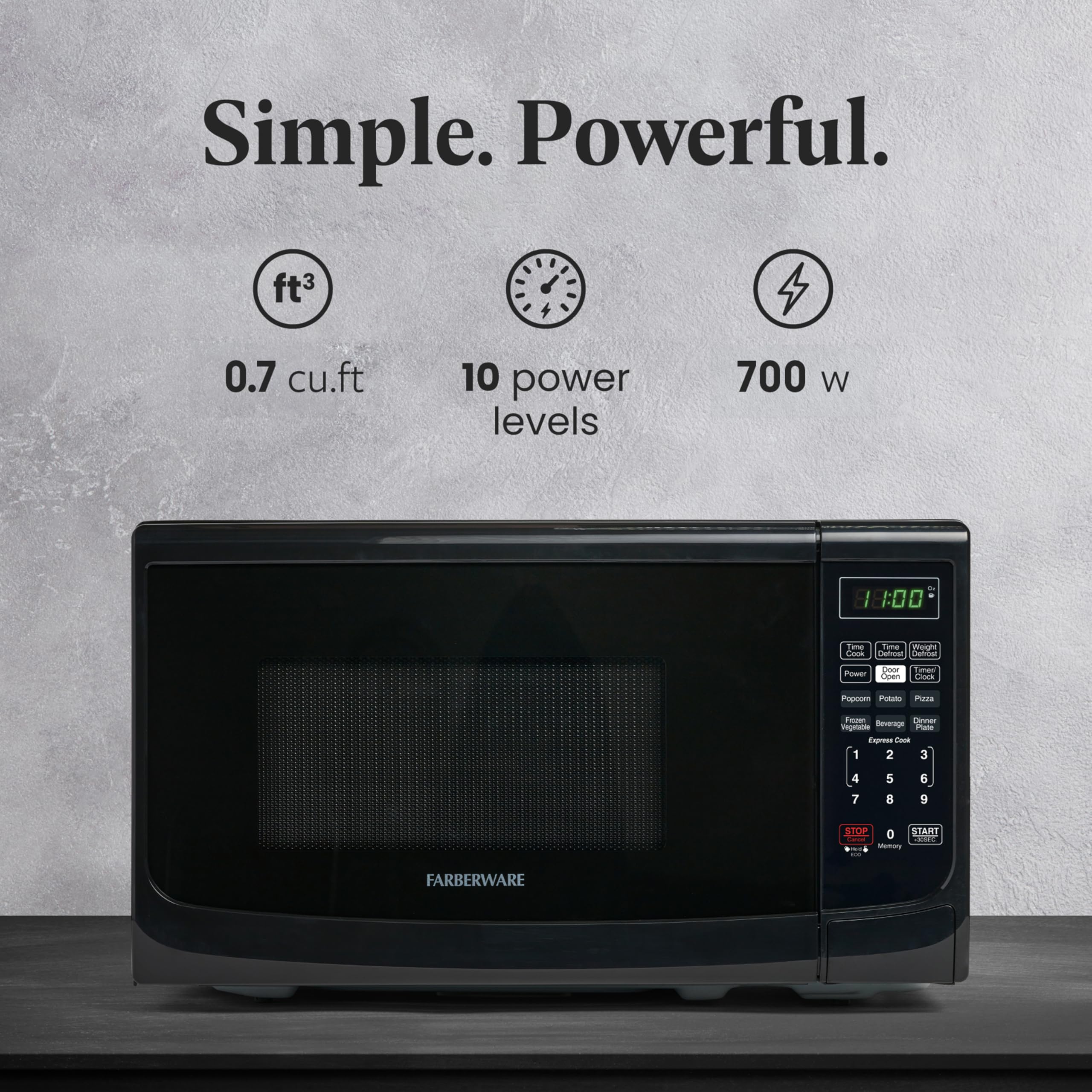PERFECT SIZE: Measuring 0.7 cu ft, this microwave is the ideal small-space solution that offers full-sized cooking in a compact space. It features an easy-to-clean interior and exterior and is perfect for the home or office.