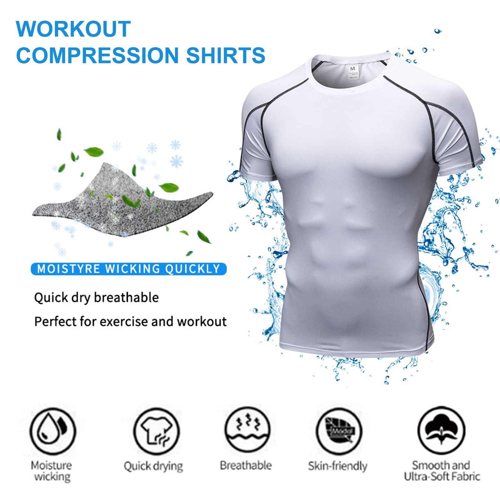 ➤【Quick-Dry Compression Shirts】: Our short sleeve compression shirt men is made of ultra soft, breathable and sweat-wicking 4-way stretch superior quality fabric, enable sweat easy for air-dry to prevent clothes sticking to the body. Excellent elasticity and durability shirts are great for all day wear.