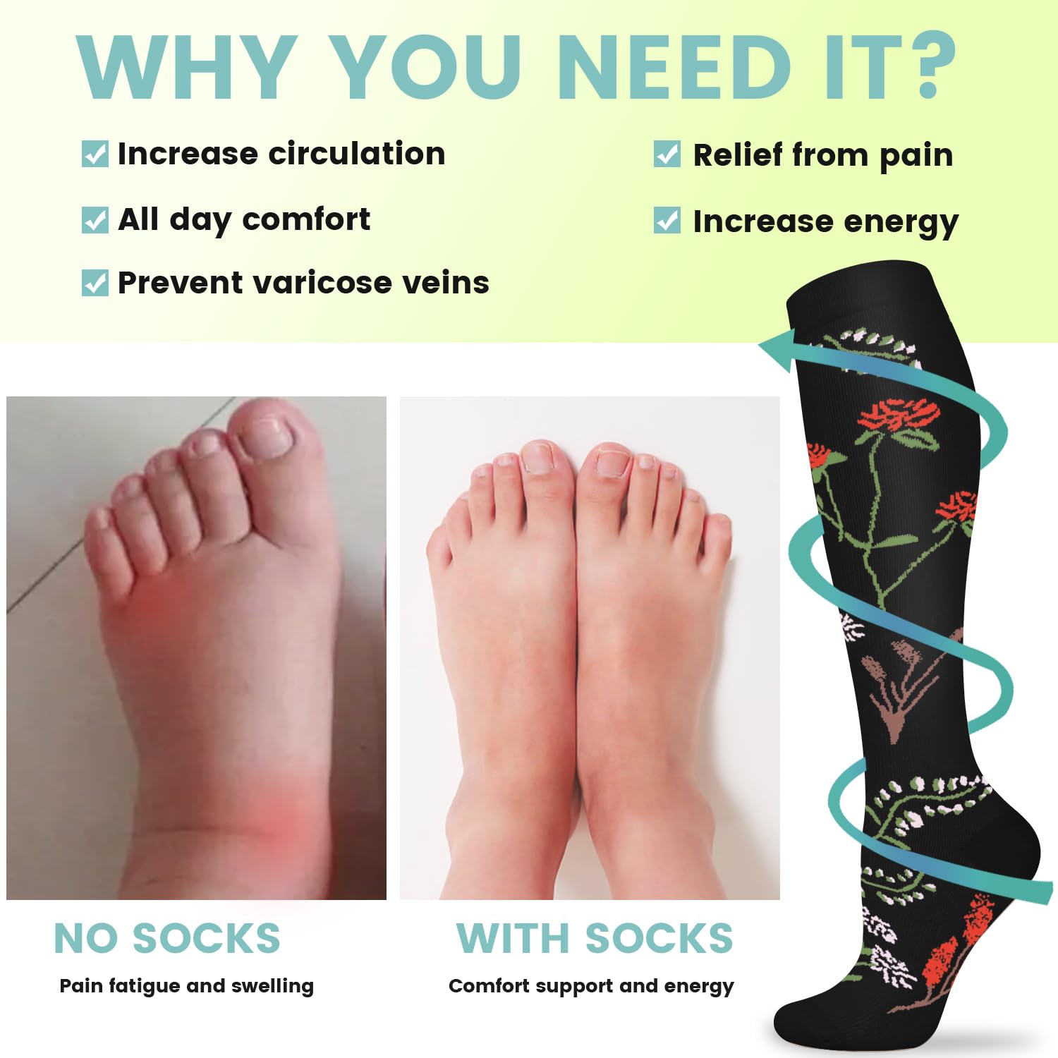 ✅ 8 PAIRS OF PREMIUM COMPRESSION SOCKS – Step into all-day comfort with our 8-pack of high-quality compression socks, designed for those who are always on the move. Featuring stylish color combinations, these socks are perfect for a full week of wear without the hassle of daily washing. Whether you're at work, traveling, or hitting the gym, these socks deliver exceptional support and value. They also make a practical and thoughtful gift for anyone who values comfort and health.