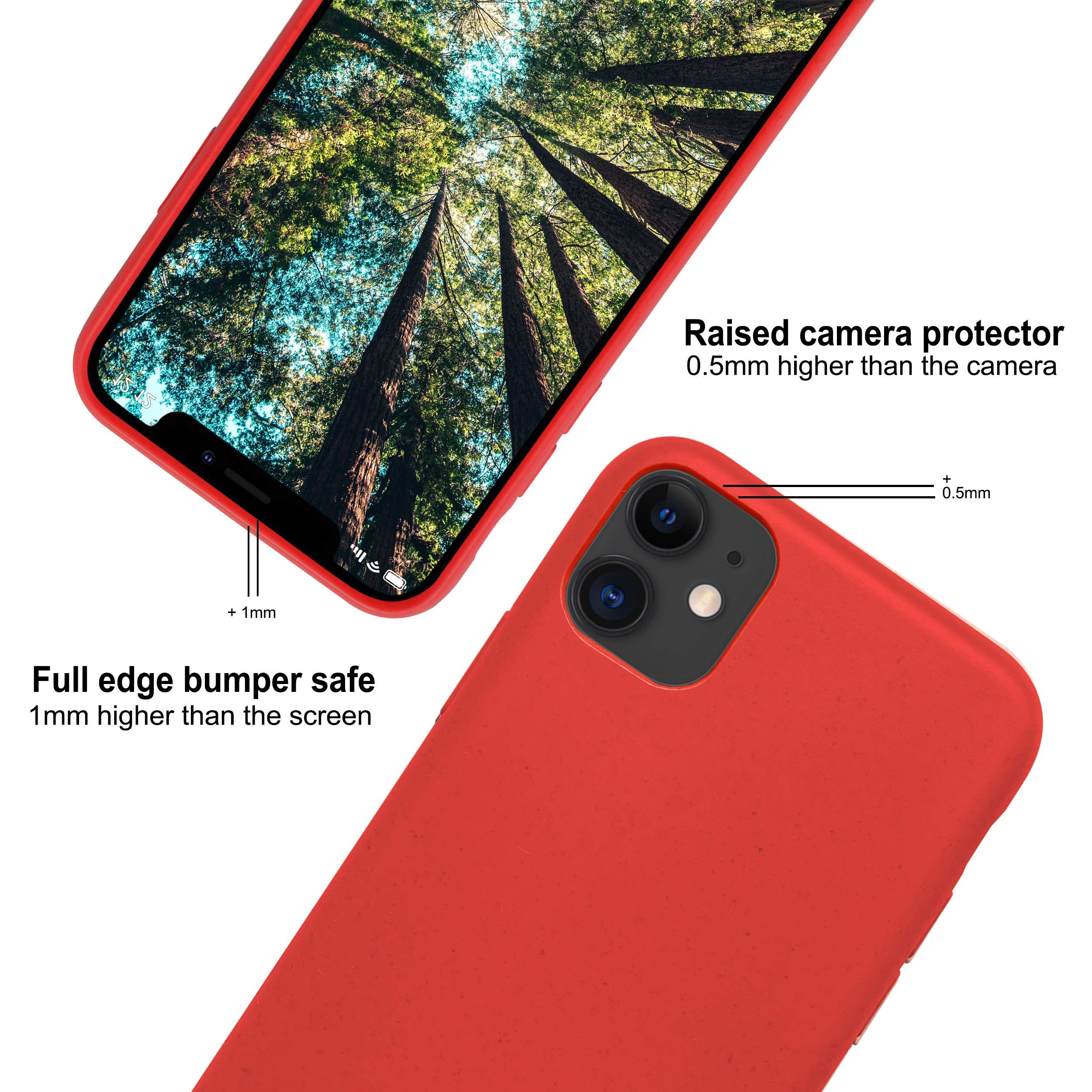 🛡️ FULL PROTECTION: Our ECO mobile case for iPhone 11 has been engineered and tested to ensure resilience and durability. The shock absorbing qualities of TPU will provide good shock proofing and anti-drop protection. The camera and front edges are 0.5 mm and 1.0 mm higher respectively, ensuring the iPhone's camera and screen are protected.