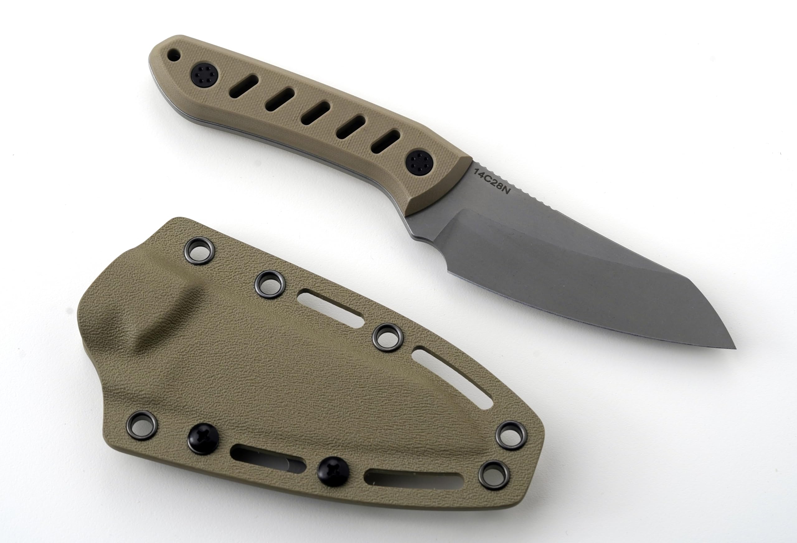 he MechEDC Fixed Blade EDC Knife is engineered for those who demand reliability and performance in every cut. Crafted from 14C28N steel, the blade offers outstanding sharpness and durability, easily tackling a variety of cutting tasks while maintaining its edge over time. Designed for rugged use, the patterned G10 handle combines lightweight construction with exceptional durability. It’s waterproof, corrosion-resistant, and offers a superior grip, ensuring safe and secure handling—even in harsh conditions. This knife comes with a high-quality Kydex sheath, providing excellent retention and easy access. Whether you're venturing into the wilderness, on a hunting trip, or need a dependable tool for everyday tasks, the MechEDC Fixed blade is the perfect fixed blade knife for EDC.