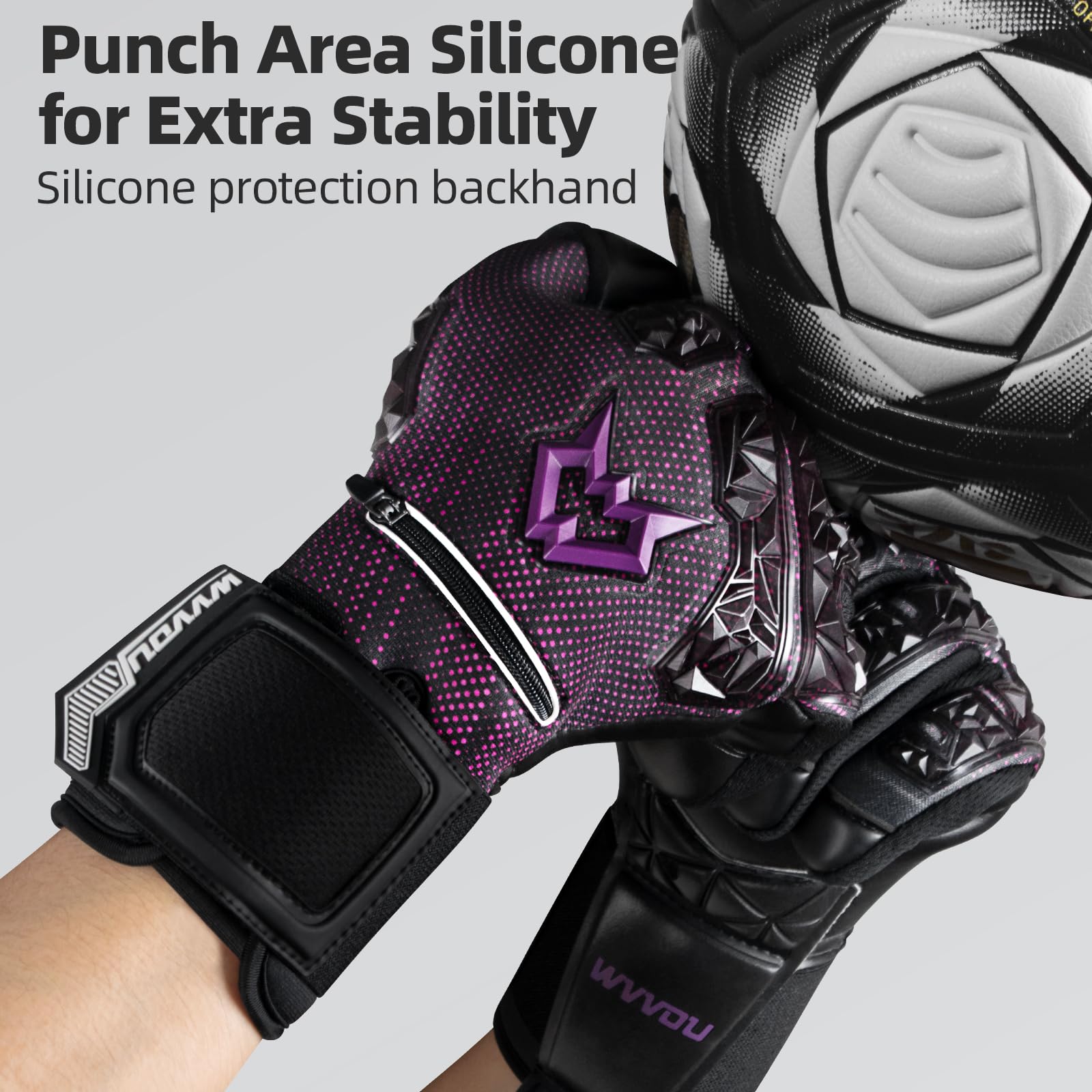 PALM REINFORCEMENT PATCH: The soccer gloves are designed with a palm reinforcement patch, which greatly enhances wear resistance and provides additional cushioning protection for your palms.