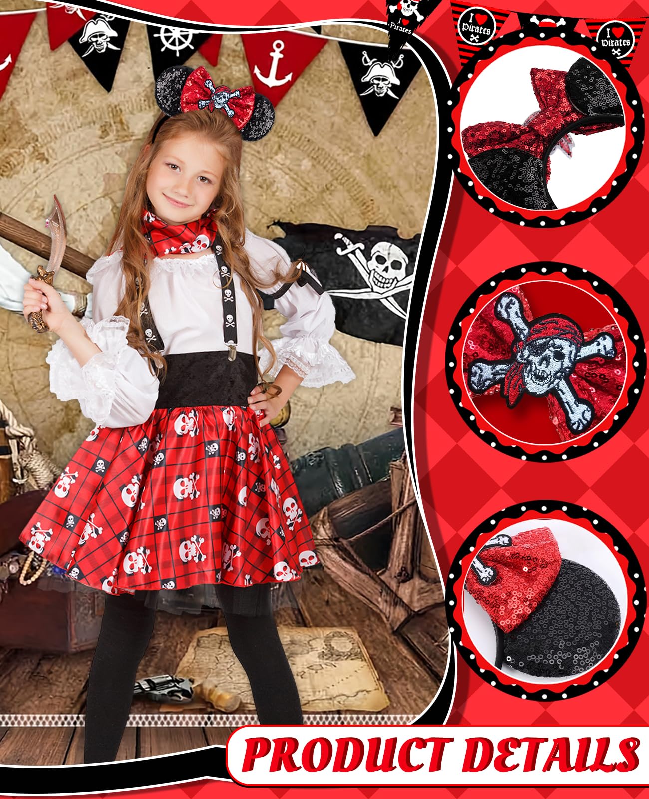 Gift for Women Girls: This cute pirate headband is an excellent gift for boys, girls, or adult women. They are a must-have for amusement park trips and make great birthday party accessories for children and adults. Perfect for festival celebration outfits