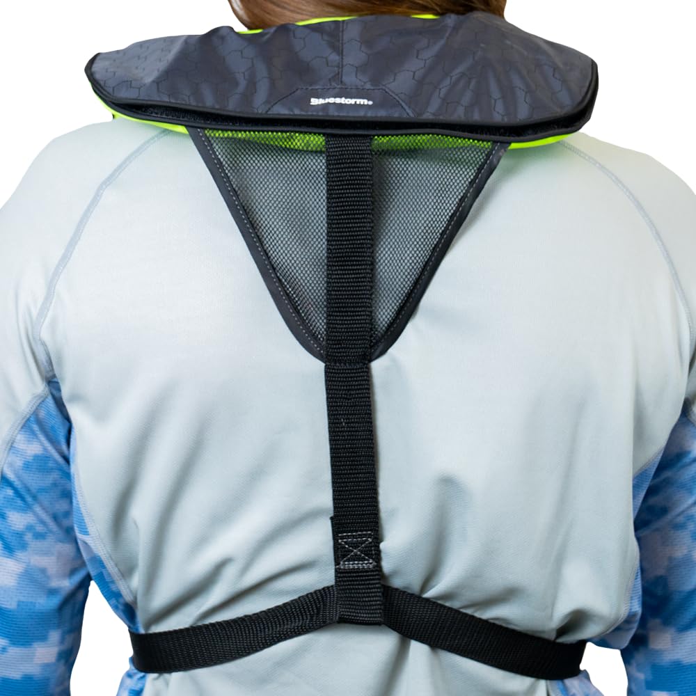 LIGHTWEIGHT & COOL: This life preserver's ergonomic collar and mesh upper back strap are great for all-day comfort; the mesh back strap helps pull the collar down and away from the neck while the long shell design puts the secure waist belt in a lower, more comfortable position on the body.