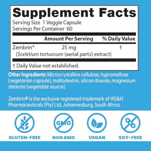HIGH POTENCY - Zembrin is a patented standardized extract of Sceletium tortuosum (Kanna). Its use has been documented for over 300 years. Zembrin has been clinically shown to enhance cognitive function and is well tolerated when used by healthy subjects