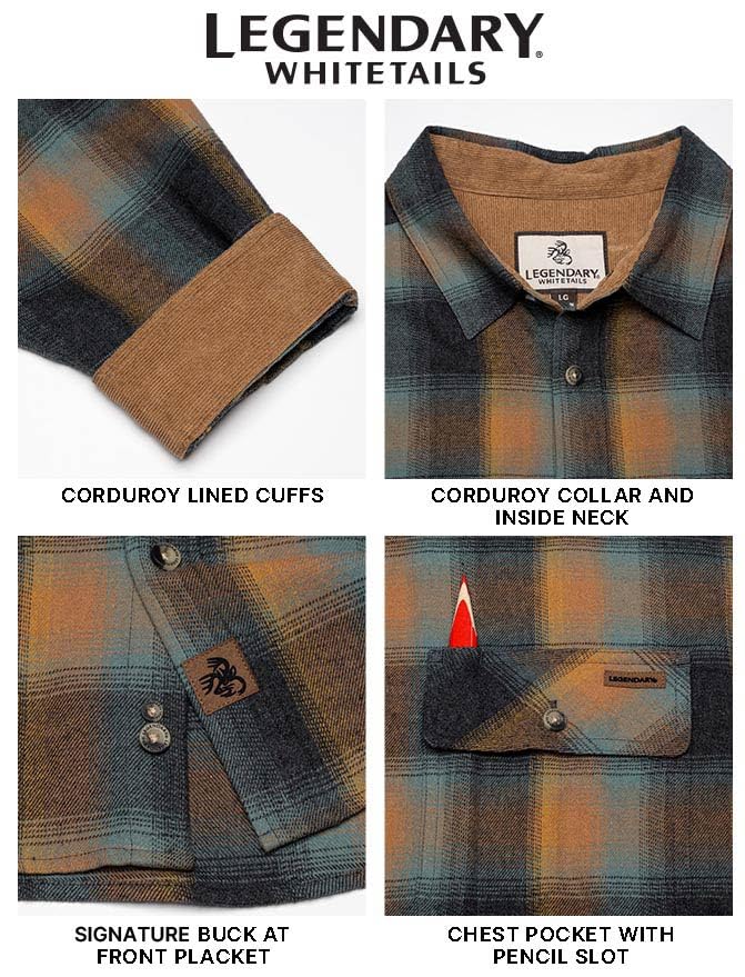 Description Our original single pocket flannel - The Buck Camp Flannel Shirt is the perfect weight to wear alone or layered over a t-shirt or under a shirt jacket. The traditional style and signature corduroy details offer unmatched durability, while the relaxed fit and brushed cotton flannel provide ultimate comfort. With multiple exclusive plaids and solids, they're suitable for any occasion from the woods to the office. The Buck Camp Flannel Shirt gives you an incredible "bang for your buck"! Big & Tall sizes are designed for men over 6'2" and add 2" in body length and 1-1⁄2" in sleeve length.