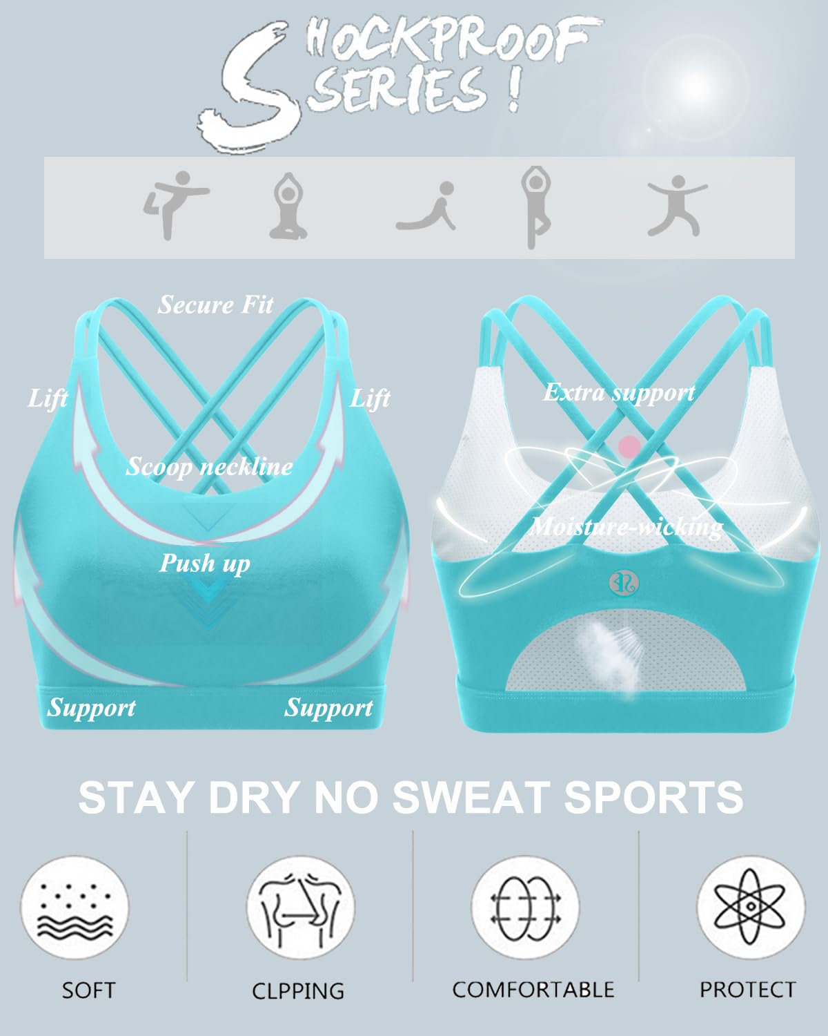 √MEDIUM SUPPORT- Perfect for A/B cups, Light compression sits close to keep everything in place and minimizes bounce, elastic band underneath, prevent rolling up. Whether you're running a 10k or just running some errands, the sports bras for women high impact will serve your lifestyle's needs. Perfect for tennis, running, yoga,workout or whatever else you throw at it.