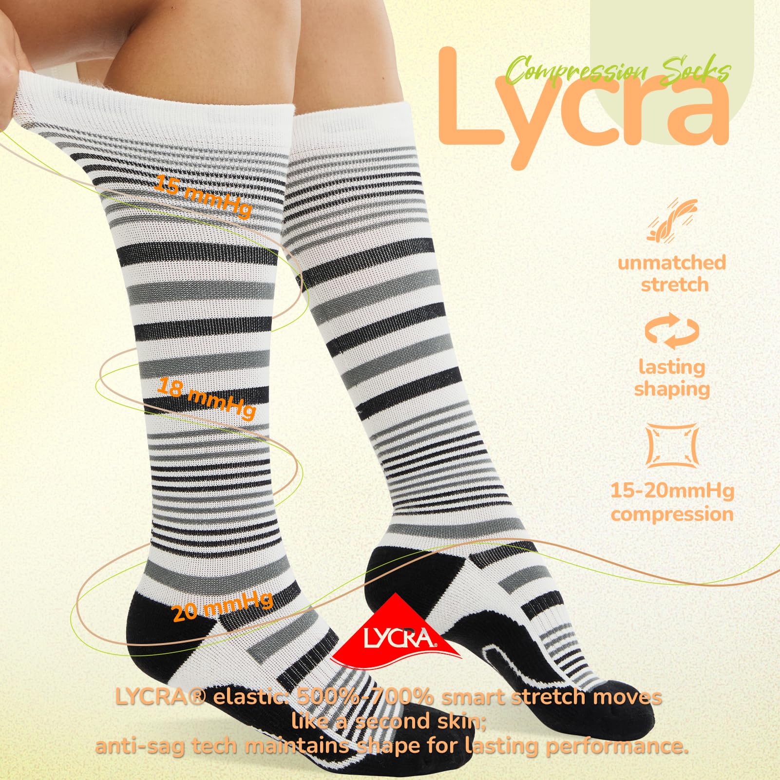 DURABLE & EASY CARE: Reinforced footpads can absorb shock, protect wear-prone parts. LYCRA enhance durability and comfort. Pre-shrunk compression stockings resist shrinking and maintain shape through washes; machine washable for convenience