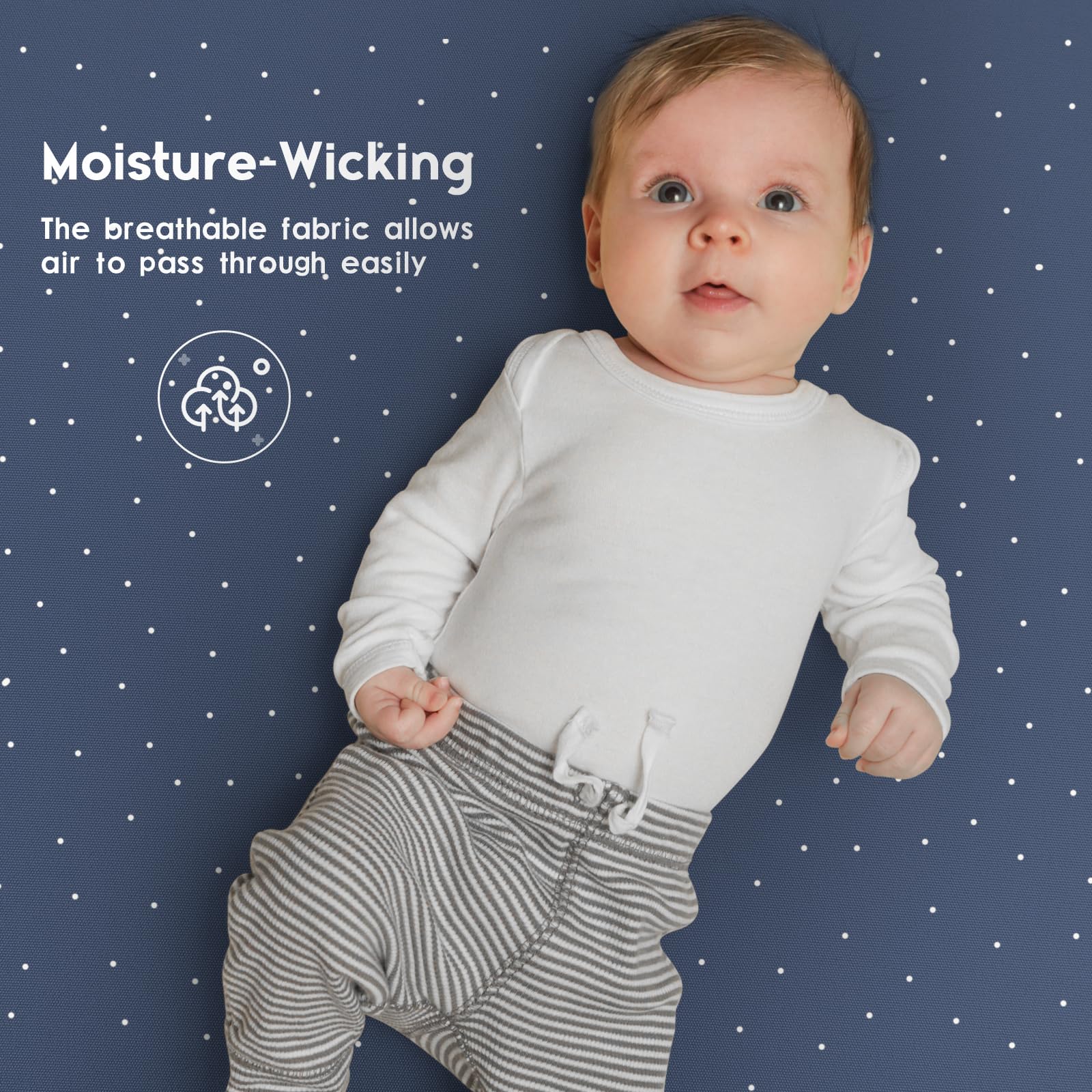 COZY AND BREATHABLE: Made in ultra soft microfiber that feels gentle and safe to the touch, our fitted crib sheets does not irritate baby's delicate skin. The breathable fabric also allows air to pass through easily and brings your baby a peaceful dream.