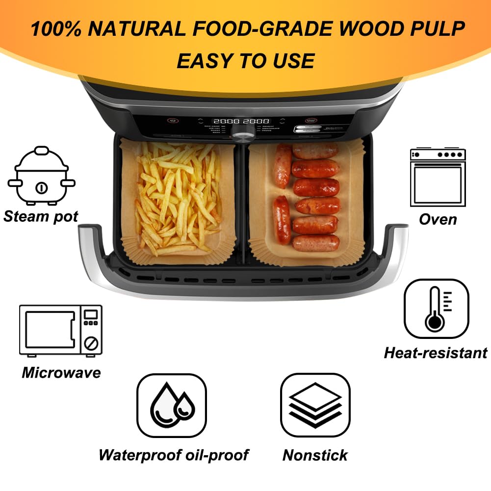 KEEP YOUR AIR FRYER CLEAN: These rectangle air fryer liners feature a bowl shape to prevent any residues or grease from seeping onto the bottom of your air fryer, keeping the sides and bottom of your dual zone air fryer spotless. Basically, there's no cleanup after baking